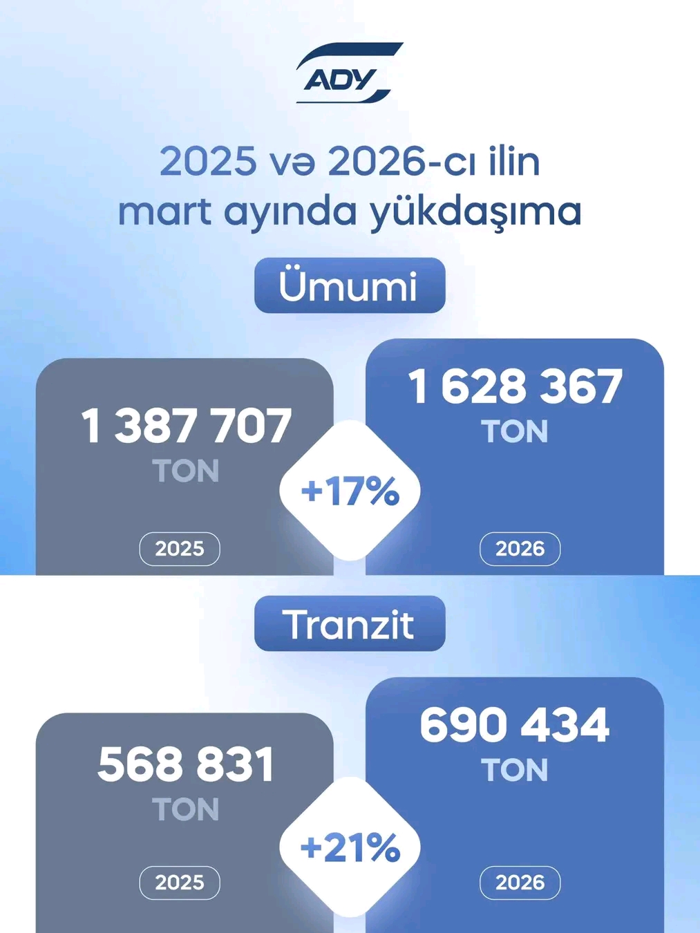 Eyni zamanda, tranzit daşımalarında da müsbət dinamika müşahidə olunub. Mart ayı ərzində 690 min tondan artıq tranzit yük daşınıb ki, bu da 2025-ci ilin eyni dövrü ilə müqayisədə 21 faiz çoxdur.
