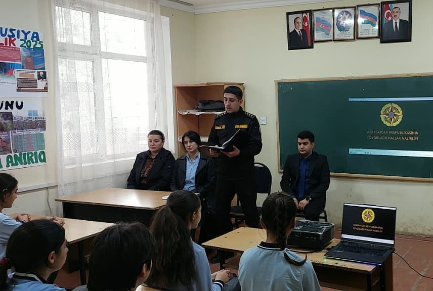Nazirlikdən Teleqraf-a verilən xəbərə görə, FHN-in Dövlət Yanğın Nəzarəti, Kiçikhəcmli Gəmilərə Nəzarət və Sularda Xilasetmə Dövlət xidmətlərinin mütəxəssislərinin də iştirakı ilə Gəncə Regional Mərkəzi (RM) tərəfindən Gəncə şəhər M.Müşfiq adına 14 nömrəli, Samux rayon Ş.Ağamalıyev adına Füzuli kənd və Şəmkir rayon Q.Allahverdiyev adına Şiştəpə kənd, Aran RM tərəfindən Ucar rayon Qazıqumlaq kənd 1 nömrəli və Ağdaş rayonu, Nehrəxəlil kənd, Muğan RM tərəfindən Saatlı şəhər 4 nömrəli, Şimal RM tərəfindən Qusar rayonu, Ləcət kənd və Xaçmaz rayonu, Xudat şəhər 4 nömrəli, Şimal-qərb RM tərəfindən Qobustan rayonu, Ə.Nəbiyev adına Təklə Mirzəbaba kənd, Qarabağ RM tərəfindən Ağcabədi şəhər 1 nömrəli və Beyləqan rayonu, Dünyamalılar kənd 1 nömrəli və Cənub RM tərəfindən Masallı rayon Bədəlan kənd tam orta məktəblərində maarifləndirmə tədbiriləri keçirilib.