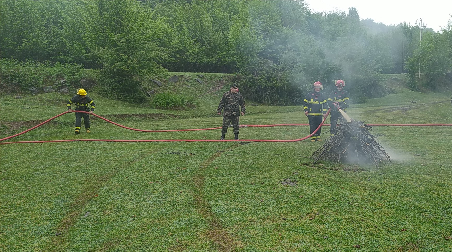 Tədbirdə Fövqəladə Hallar və Ekologiya və Təbii Sərvətlər nazirliklərinin yerli qurumlarının qüvvə və texnikası cəlb edilməklə şərti olaraq baş vermiş meşə yanğının qarşısının alınması, eyni zamanda xüsusi texnikalar vasitəsilə meşəətrafı ərazidə 6-8 metr enində sahənin şumlanaraq təhlükəsizlik zolağının yaradılması əyani şəkildə tədbir iştirakçılarına nümayiş etdirilib.