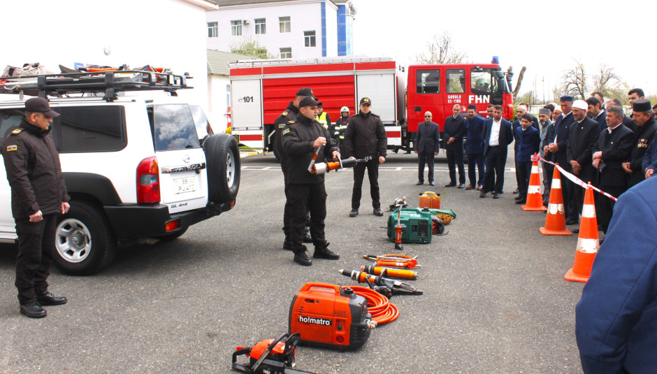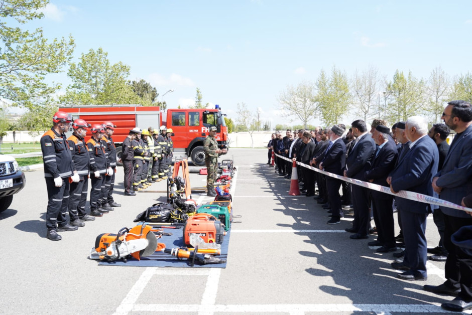 Kursların praktiki hissəsində tədbir iştirakçılarına xilasetmə alət və avadanlıqları barədə məlumat verilib