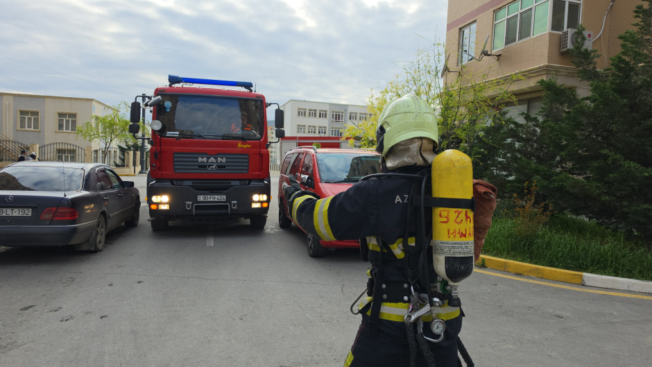 Təlim şərti yanğın həyəcan siqnalı ilə yanğın texnikalarının yaşayış binasına, həmçinin su hovuzuna yaxınlaşa bilməsi və ümumilikdə ərazidəki yanğına qarşı əməliyyat şəraitinin qiymətləndirilməsi məqsədilə keçirilib.