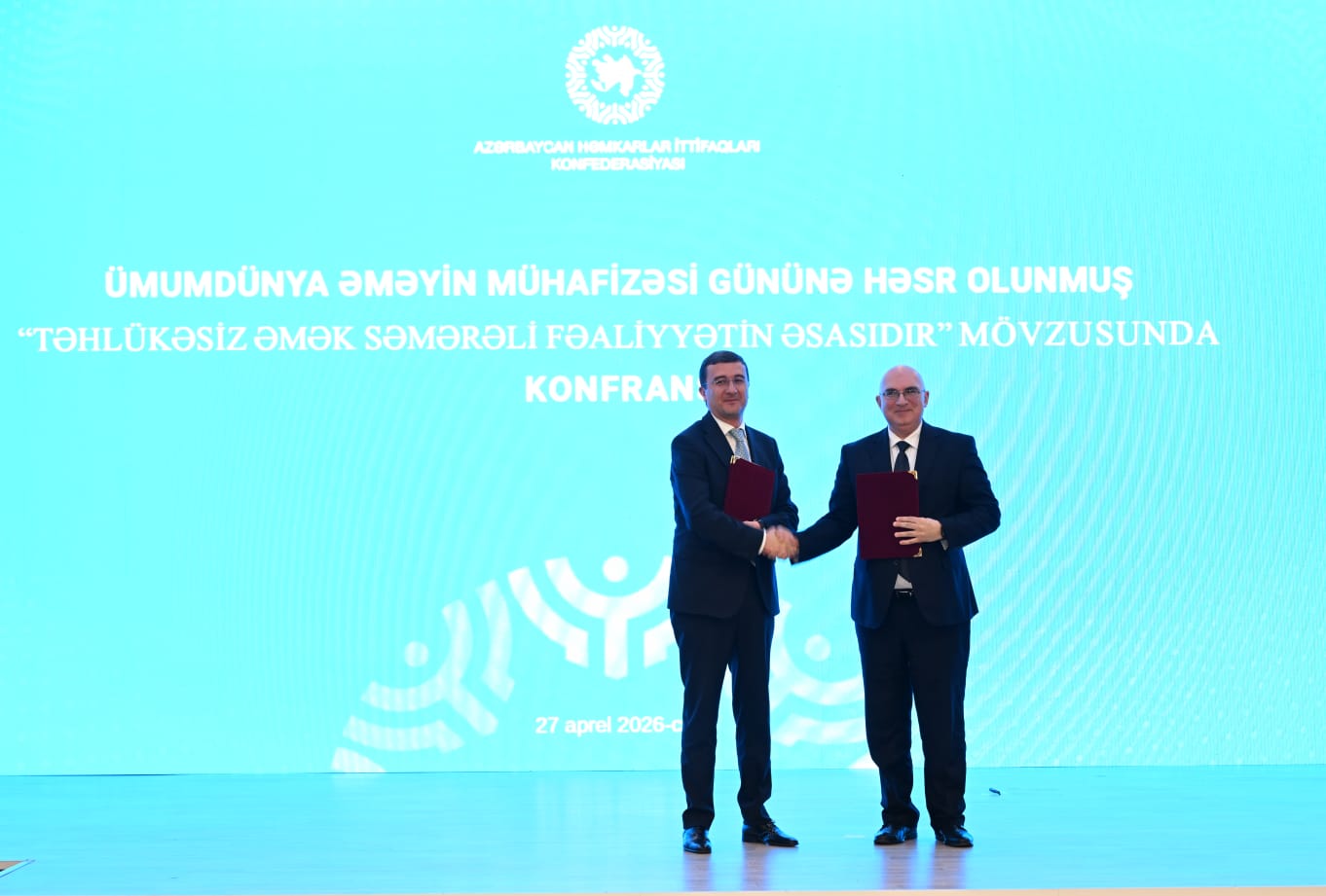 Tədbir çərçivəsində Azərbaycan Həmkarlar İttifaqları Konfederasiyasının Əmək və Sosial Münasibətlər Akademiyası ilə Azərbaycan Sahibkarlar (İşəgötürənlər) Təşkilatları Milli Konfederasiyası arasında sahibkarlar üçün əməyin təhlükəsizliyi və mühafizəsi sahəsində (IOSH) təlimlərin təşkilinə dair Anlaşma Memorandumu imzalanıb.