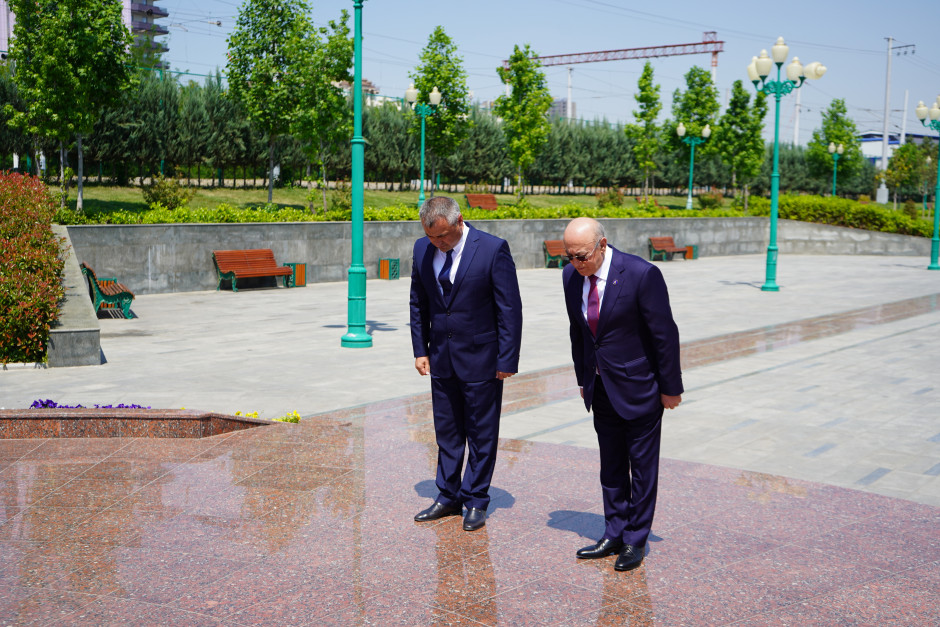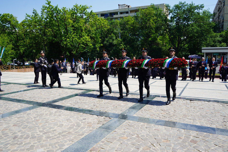 Nazirlikdən Teleqraf-a verilən xəbərə görə, əvvəlcə, nümayəndə heyəti Daşkənd şəhərində xalqımızın Ümummilli Lideri Heydər Əliyevin abidəsini ziyarət edərək önünə gül dəstələri qoyub, əziz xatirəsini dərin ehtiramla yad edib.