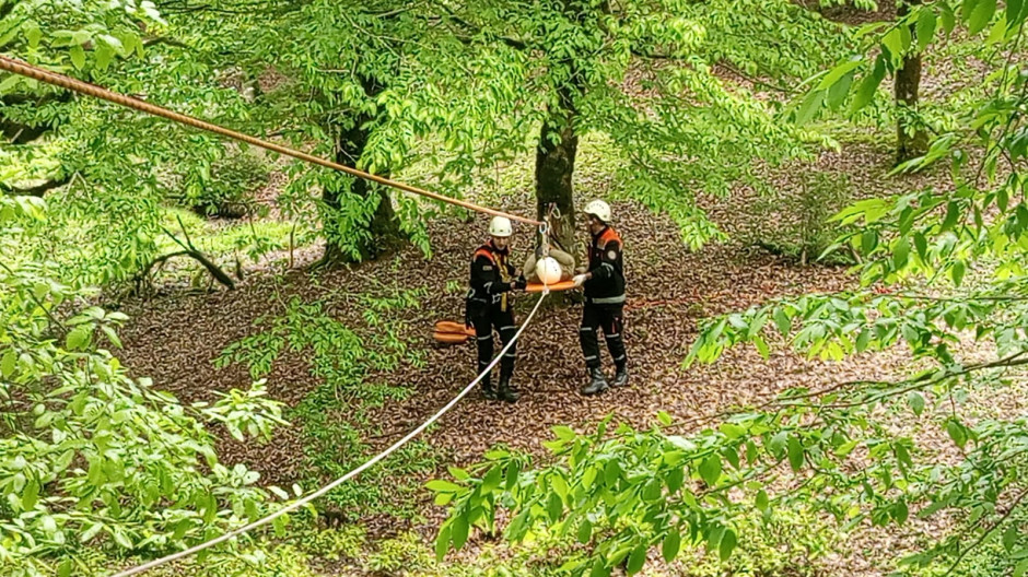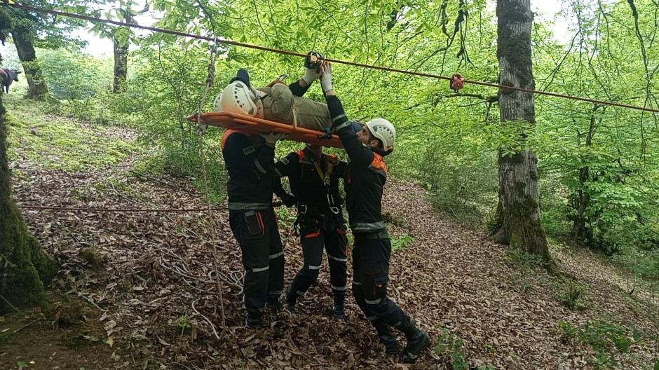 Təlim zamanı xilasedicilər şərti olaraq meşə massivində xəsarət alaraq köməksiz vəziyyətdə qalmış vətəndaşı xüsusi xilasetmə vasitələri ilə “xilas edərək” təhlükəsiz əraziyə təxliyə ediblər.