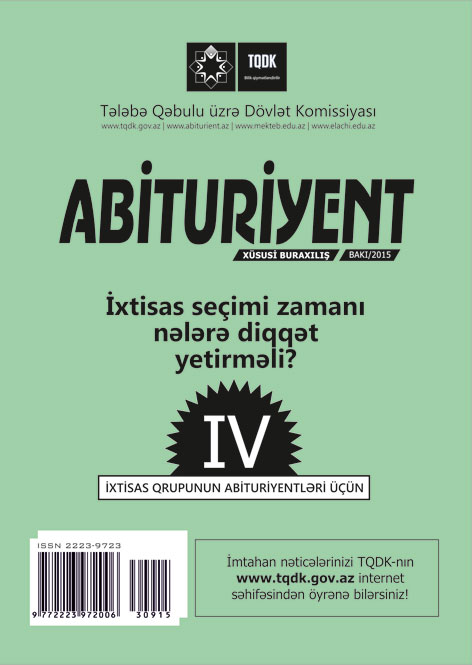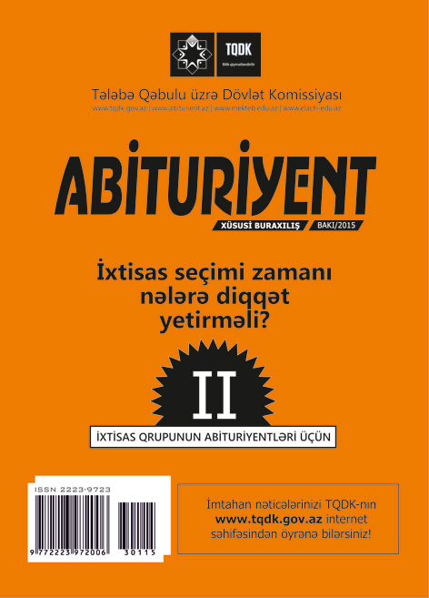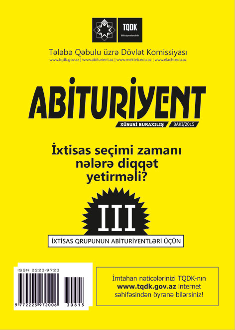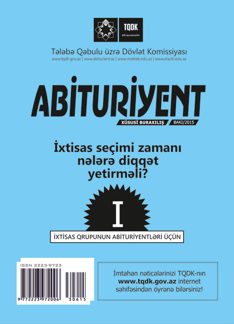 Tələbə Qəbulu üzrə Dövlət Komissiyası (TQDK) Azərbaycanın ali təhsil müəssisələrinə bütün qruplar üzrə müsabiqə şərtini ödəmiş abituriyentlər üçün ixtisas seçimi elan edib. İxtisas seçimi iyulun 30-dan avqustun 11-dək internet vasitəsilə aparılır.