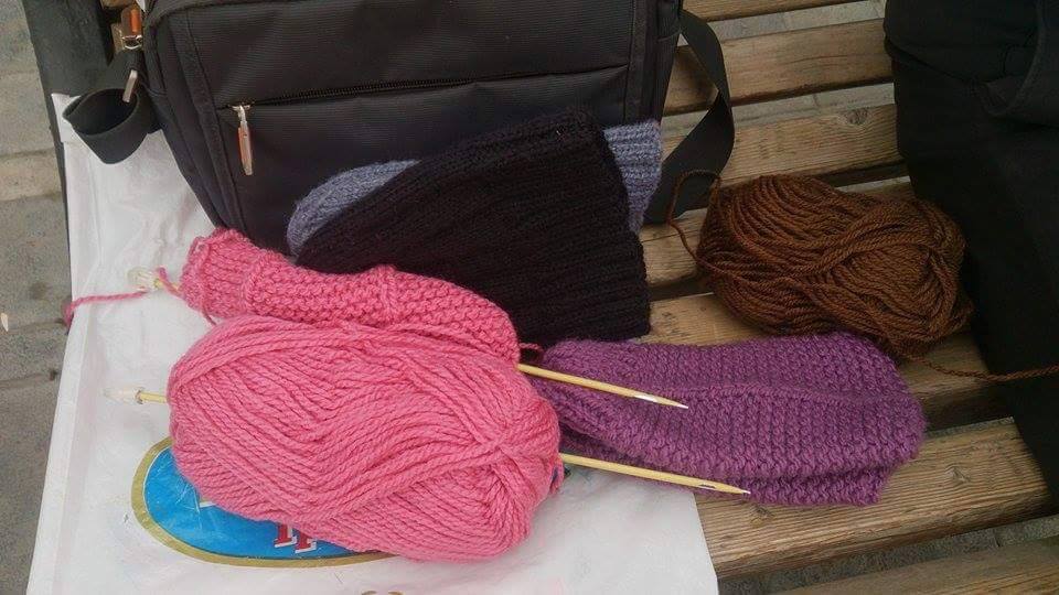 Mən parka daxil olanda skamyada əyləşib şərf toxuyurdu.