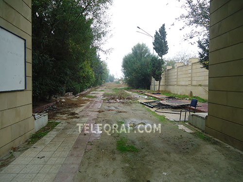Girişdəki sınıq-salxaq qapını görüb diqqət kəsilirəm. Şüşələri qırıq-qırıq olan qapının qabağına dəmir qoyublar. Elə bil, buralarda atışma olub. Yəqin ki, universitetin təzə bağlandığı günlərin yadigarıdır, diplom dalınca gələn tələbələrin zavalına gəlib.
