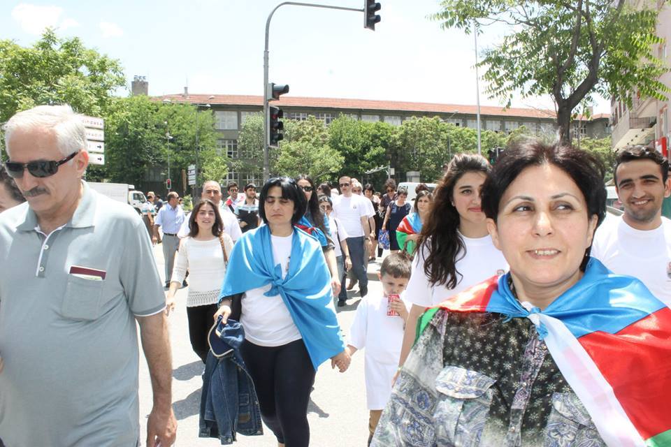 Türkiyədə yaşayan Xanım Xəlilova da çıxış edərək bildirdi ki, 28 May tək Azərbaycan üçün yox, Türkiyə üçün də əziz bir gündür, çünki 96 il bundan öncə şərqdə ilk türk dövləti qurulub: “Məhəmməd Əmin Rəsulzadə və onun silahdaşları çox çilə çəkdilər, Azərbaycan Demokratik Cümhuriyyətinin yaranması onlara çox çətinliklə başa gəldi. Azərbaycan Cümhuriyyətinin yüksəltdiyi üçrəngli bayraq 70 il mücadilədən sonra bir daha ucalara qaldırıldı və Rəsulzadənin dediyi kimi, bu bayraq bir daha enməyəcək”.