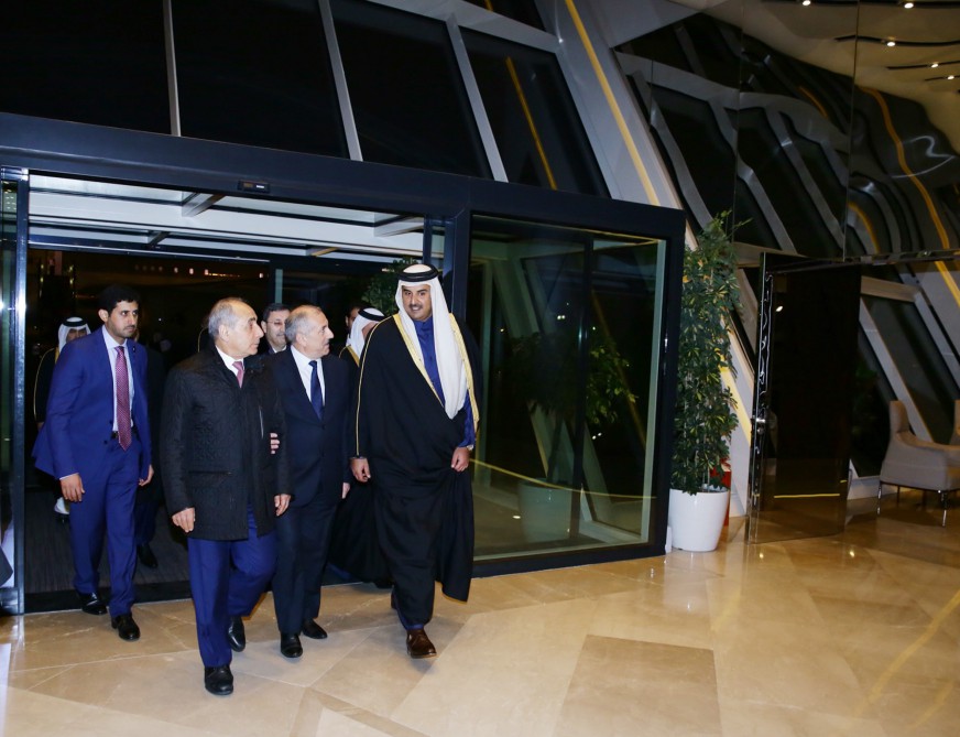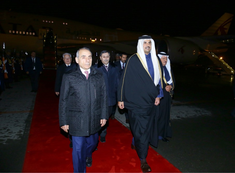 Əmir Əlahəzrət şeyx Təmim bin Həməd Al Tanini Azərbaycanın Baş nazirinin birinci müavini Yaqub Eyyubov və digər rəsmi şəxslər qarşıladılar.