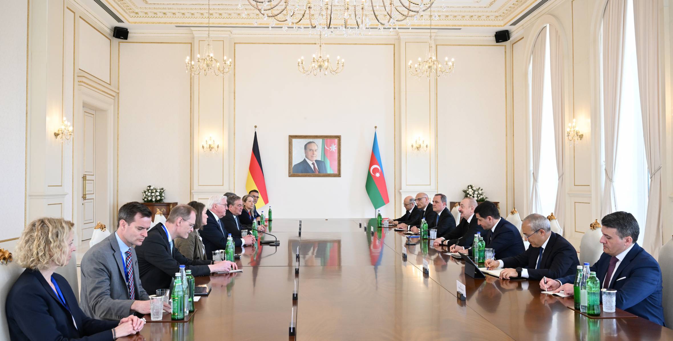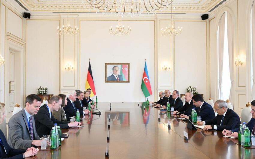 Azərbaycan Prezidenti eyni zamanda almaniyalı həmkarı ilə münasibətlərindən danışıb: "Prezident Ştaynmayer və mən bir-birimizi çoxdan tanıyırıq, onun xarici işlər naziri olduğu illərdən bəri təmasdayıq, o, bir neçə dəfə buraya səfər edib. Keçən il biz Berlində görüşdük, onunla ünsiyyətdə olmaq çox xoş idi. O, çox bacarıqlı siyasətçi və böyük dövlət xadimidir. Alman xalqı onunla fəxr edə bilər. Səfərin məzmunu və formasına gəldikdə isə mətbuatda əks olunduğu kimi, hamı gördü, çox səmimi, mədəni proqramla müşayiət olunan yaxşı səfər idi. Bizim müxtəlif məsələləri müzakirə etmək üçün kifayət qədər vaxtımız oldu. Əlbəttə ki, işgüzar sahədə əməkdaşlığımızın mahiyyəti çox genişdir və biz bu səfəri, yeri gəlmişkən, Almaniya Prezidentinin Azərbaycana ilk səfərini münasibətlərimizdə mühüm mərhələ hesab edirik. Beləliklə, hər iki prezidentin Bakıdan verdiyi bütün mesajlar son dərəcə müsbət və zamanında verilən mesajlar idi. Ona görə də hesab edirəm ki, bu, həm də ölkələrimizin işgüzar dairələrinə ikitərəfli istiqamətdə daha fəal işləmək üçün yaxşı mesajdır. Həmçinin Almaniyadan, xüsusən də yeni hökumətdən Avropa İttifaqı ilə bağlı gözləntilərimiz odur ki, müstəqil siyasət yürütməkdə davam etsin. Çünki bilirsiniz, Avropa İttifaqında Azərbaycana qarşı çox pis əməllər törədən, heç bir əsası olmadan özünü lider kimi göstərən bir ölkə var. Avropanın aparıcı iqtisadiyyatı, aparıcı siyasi qüvvəsi Almaniyadır. Ona görə də ümid edirəm ki, Avropa İttifaqı oradakı ermənipərəst qrupların təsiri altına düşməyəcək".