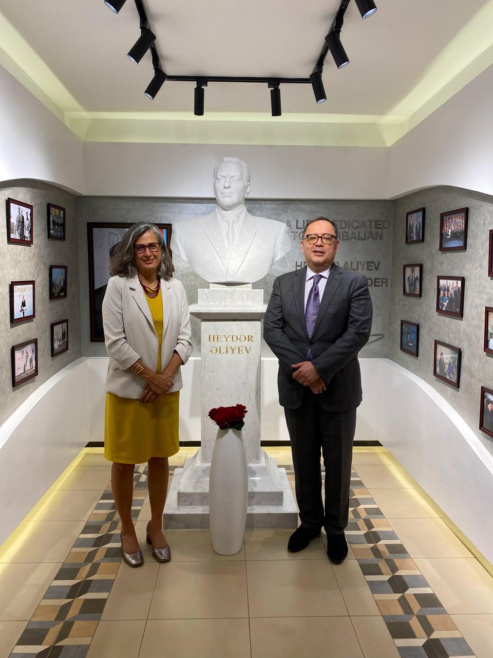 Səfirlikdən Teleqraf-a bildirilib ki, icraçı direktor və onu müşayiət edən heyət ilk öncə səfirliyin inzibati binasında yaradılmış Ümummilli Lider Heydər Əliyevin xatirə otağı və dövlətçilik guşəsi ilə tanış olub. Ulu Öndərin xatirəsi ehtiramla yad edilib.
