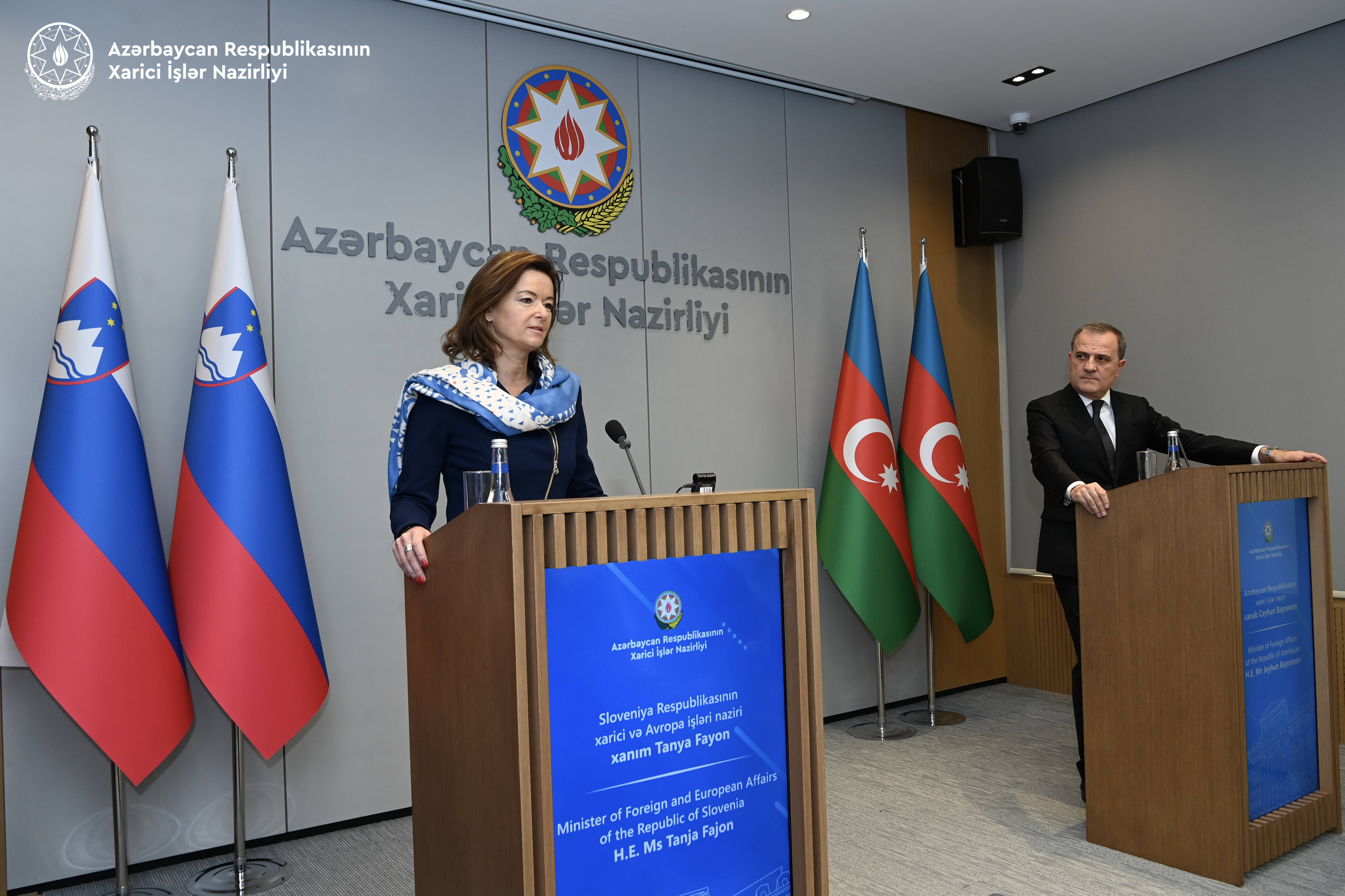 Azərbaycan xarici işlər naziri Ceyhun Bayramov sloveniyalı həmkarı Tanya Fayonla görüşüb.