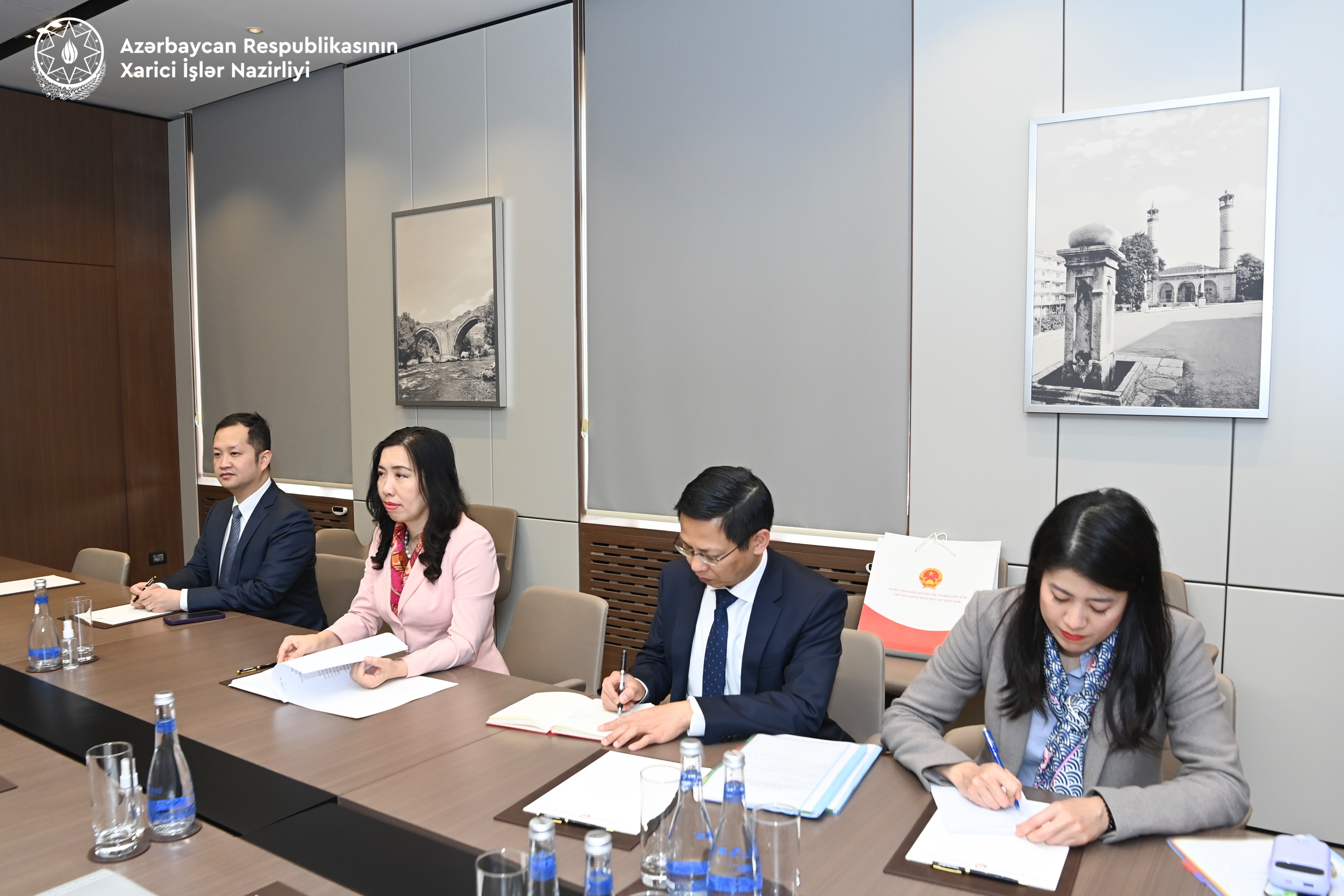 Eyni gündə, Azərbaycan Respublikası və Vyetnam Sosialist Republikasının Xarici İşlər Nazirlikləri arasında siyasi məsləhətləşmələr aparılıb. Siyasi məsləhətləşmələrə Azərbaycan tərəfindən nazir müavini Elnur Məmmədov, Vyetnam tərəfindən isə xarici işlər nazirinin müavini Le Thi Thu Hang rəhbərlik edib.