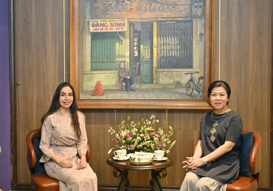 Heydər Əliyev Fondunun vitse-prezidenti Leyla Əliyeva və Vyetnam Kommunist Partiyası Mərkəzi Komitəsinin Baş katibinin xanımı No Fon Li iki ölkə arasında mövcud əlaqələrin genişlənməsi ilə bağlı fikir mübadiləsi aparıblar.