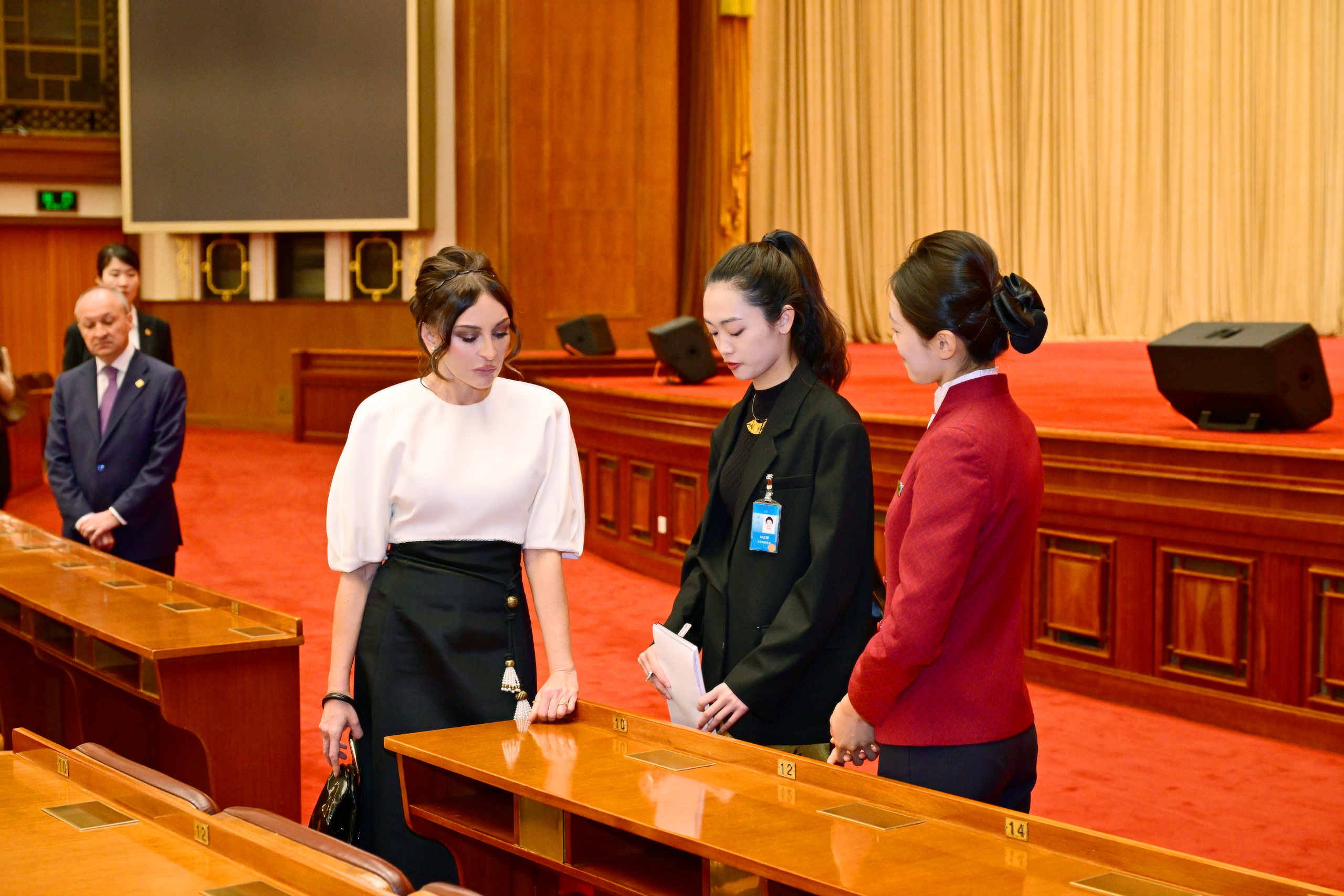 Aprelin 23-də Azərbaycan Respublikasının birinci xanımı Mehriban Əliyeva, qızı Leyla Əliyeva və digər ailə üzvləri Pekində Böyük Xalq Sarayı ilə tanış olublar.