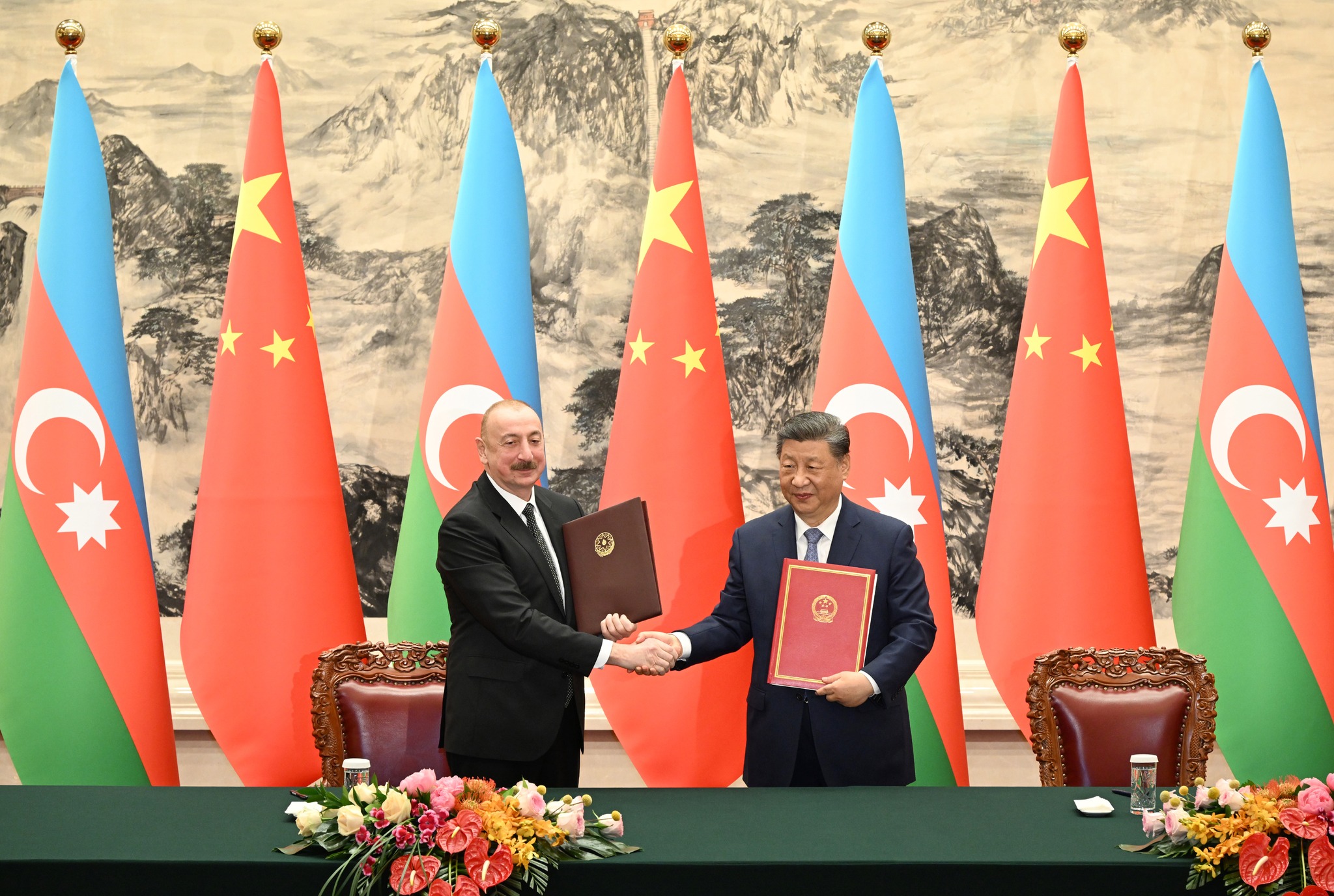 Azərbaycan Prezidenti İlham Əliyevin Çin Xalq Respublikasına dövlət səfəri çərçivəsində aprelin 23-də Pekində “Azərbaycan Respublikası ilə Çin Xalq Respublikası arasında hərtərəfli strateji tərəfdaşlıq əlaqələrinin qurulması haqqında Birgə Bəyanat” imzalanıb. Birgə Bəyanata Prezident İlham Əliyev və Çin Sədri Si Cinpin imza atıb.