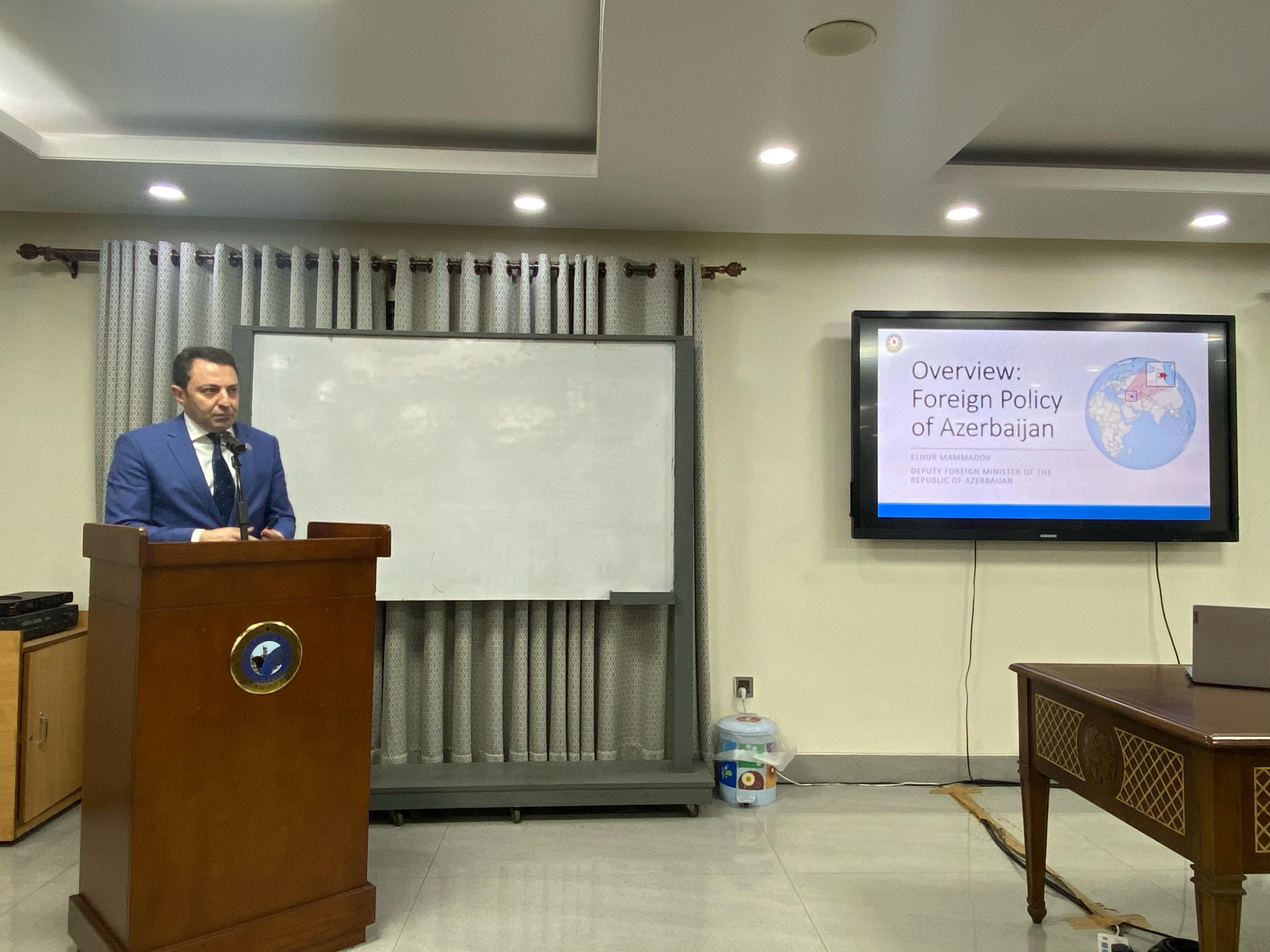 Səfər çərçivəsində nazir müavini Elnur Məmmədov Banqladeşin Xarici Siyasət Akademiyasının rəhbəri ilə də görüşüb və Akademiyanın tələbələri qarşısında “Azərbaycanın xarici siyasəti” mövzusunda mühazirə ilə çıxış edib.