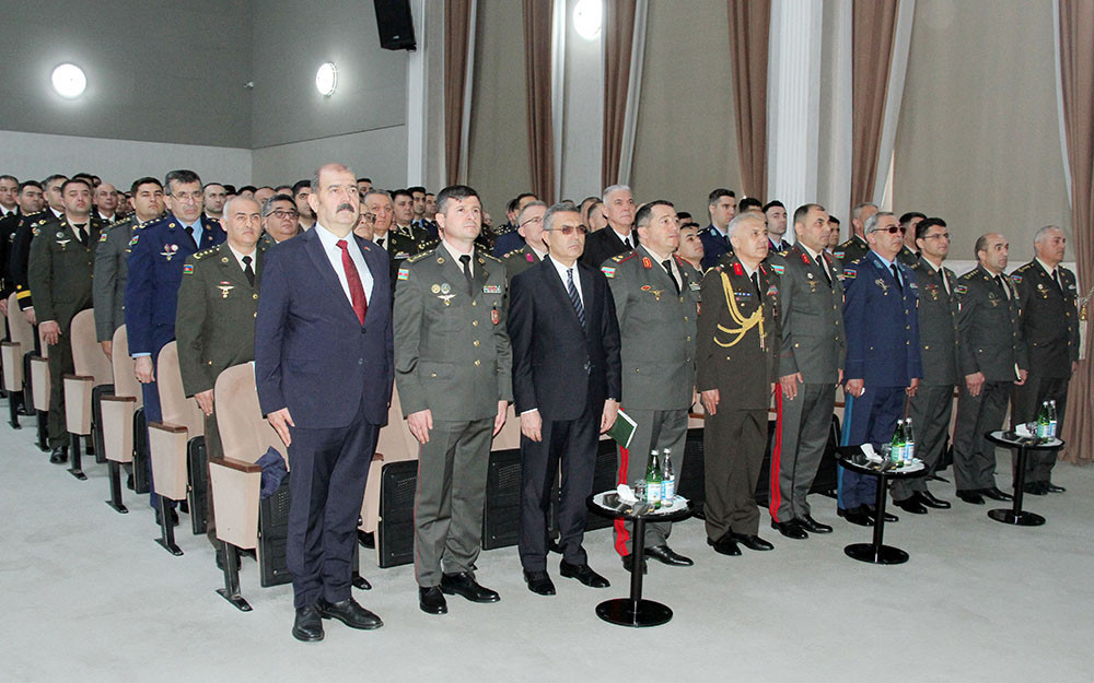 Heydər Əliyev adına Hərbi İnstitutun klubunda davam edən tədbirin rəsmi hissəsində əvvəlcə Ulu Öndər Heydər Əliyevin və hər iki ölkənin suverenliyi və azadlığı uğrunda canından keçən şəhidlərin əziz xatirələri bir dəqiqəlik sükutla yad edilib. Hərbi orkestrin müşayiəti ilə Azərbaycan Respublikasının Dövlət Himni və Türkiyə Respublikasının İstiqlal Marşı səsləndirilib.