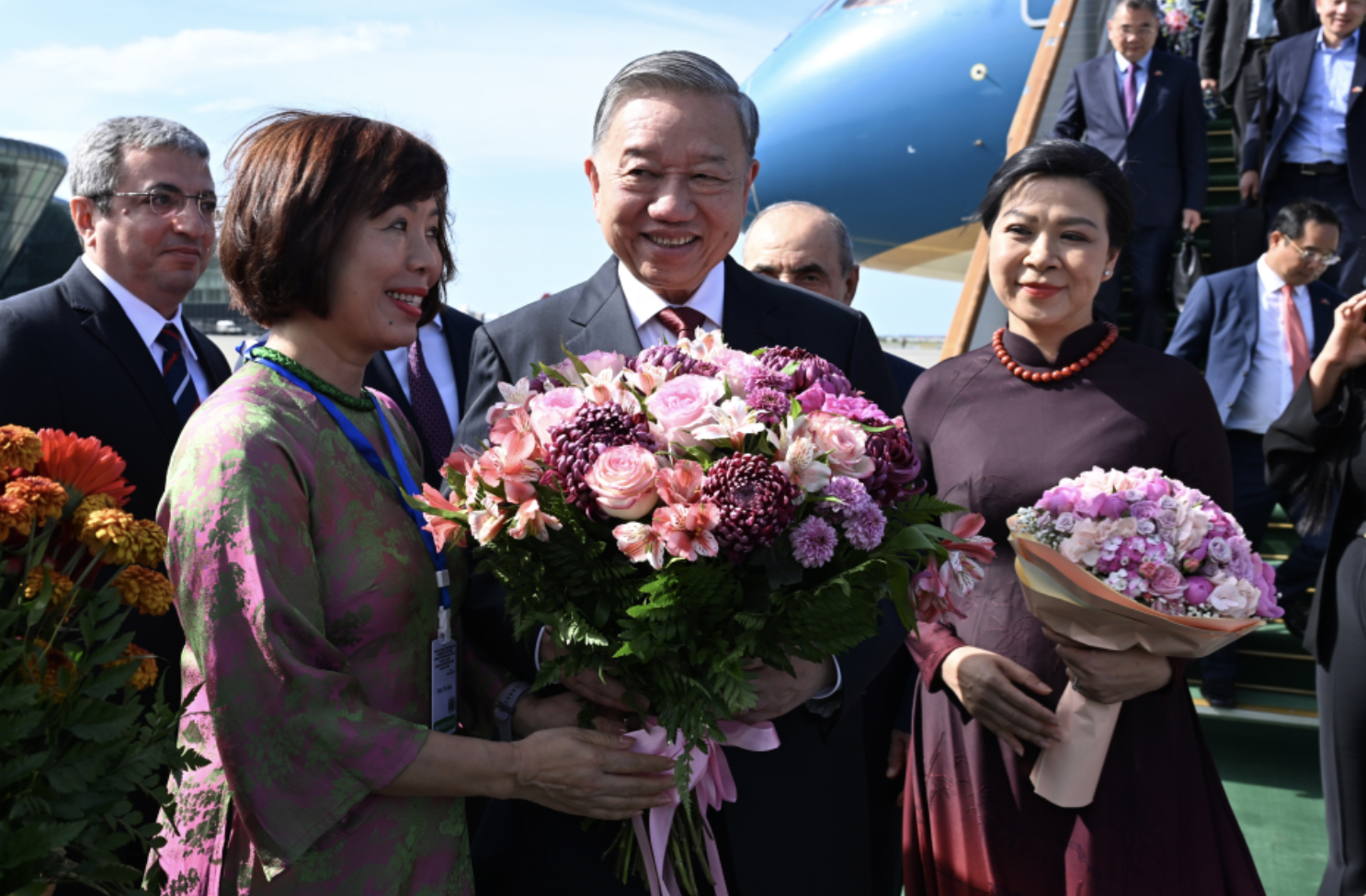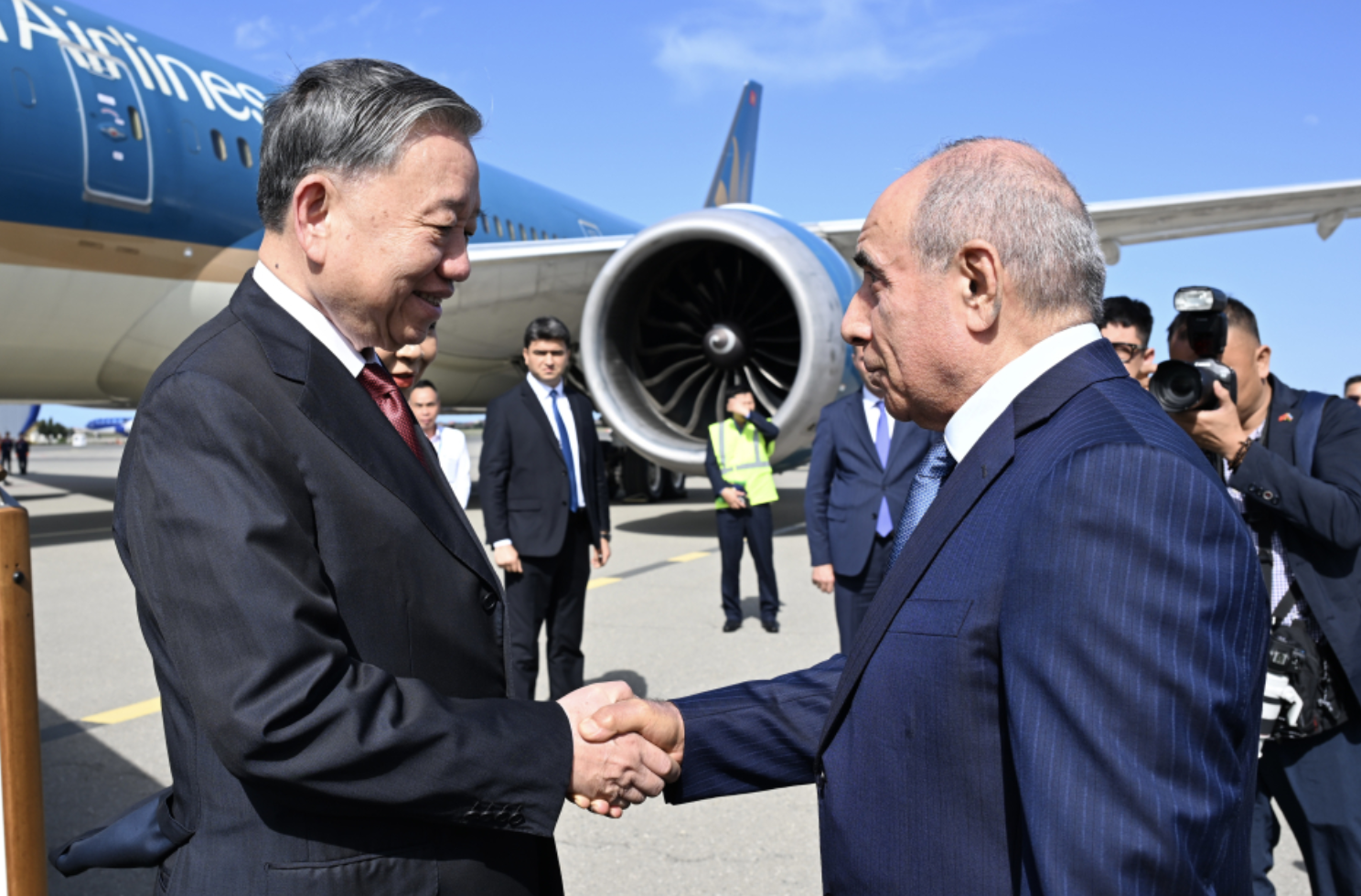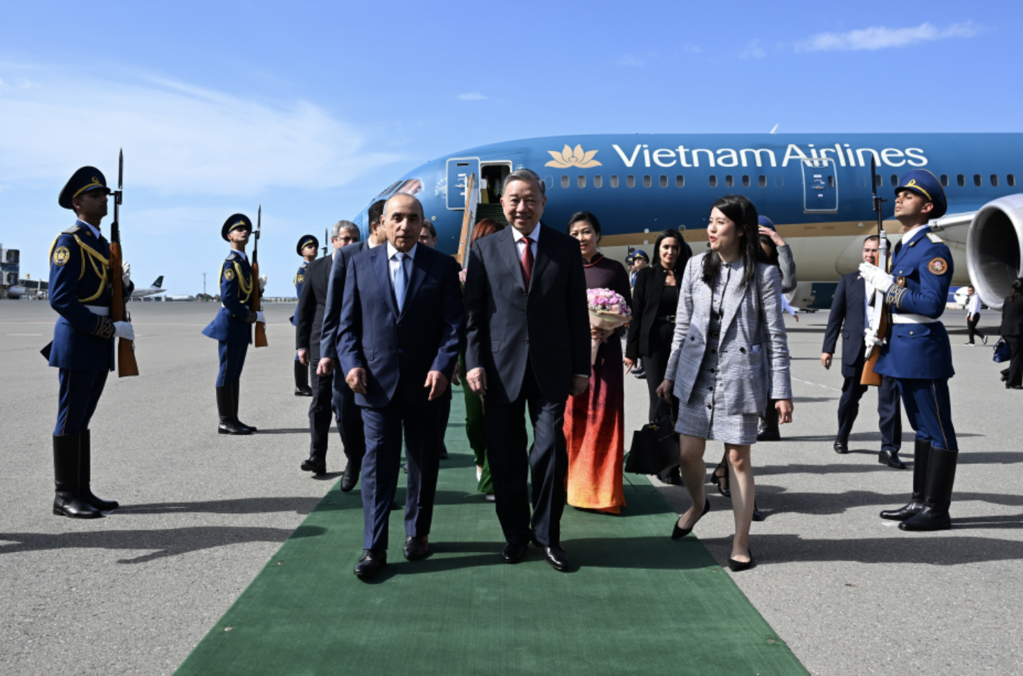 Vyetnam Kommunist Partiyası Mərkəzi Komitəsinin Baş katibi To Lamı və xanımı No Fon Lini hava limanında Baş nazirin birinci müavini Yaqub Eyyubov, xarici işlər nazirinin müavini Elnur Məmmədov və digər rəsmi şəxslər qarşılayıblar.