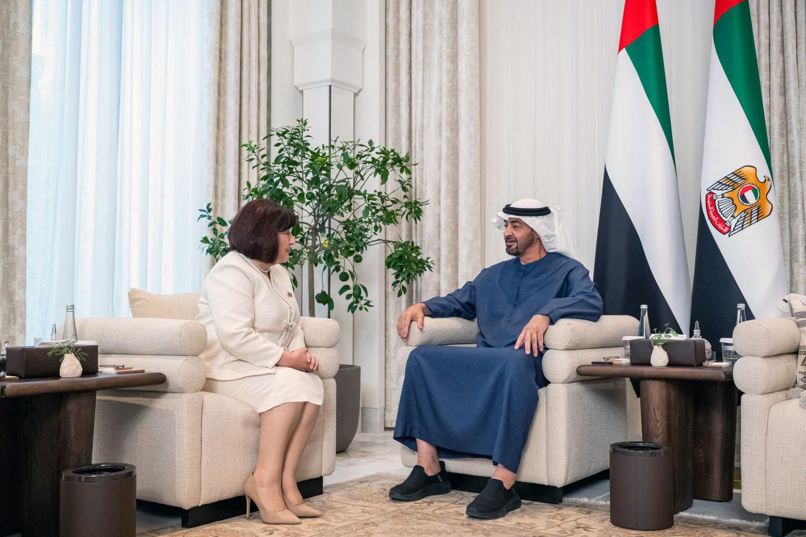 Azərbaycan Milli Məclisinin sədrini səmimiyyətlə salamlayan Prezident Şeyx Məhəmməd bin Zayed Al Nəhyan, bu səfərin parlamentlərimiz arasında əlaqələrin daha da genişləndirilməsinə töhfə verəcəyinə inamını ifadə edib.
