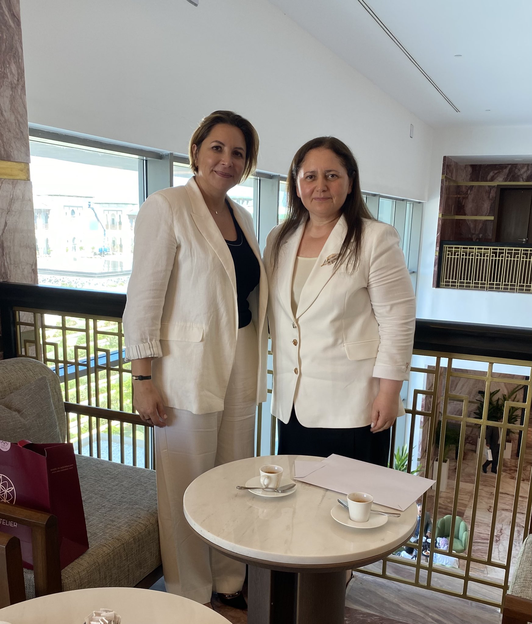 Azərbaycan Respublikası Ailə, Qadın və Uşaq Problemləri üzrə Dövlət Komitəsinin sədr müavini Aynur Sofiyeva və Heydər Əliyev Fondunun şöbə müdiri Elvin Aslanov Mərakeşin Uşaq Hüquqları üzrə Müşahidə Qurumunun vitse-prezidenti xanım Gizlan Bencellunla görüşüb.