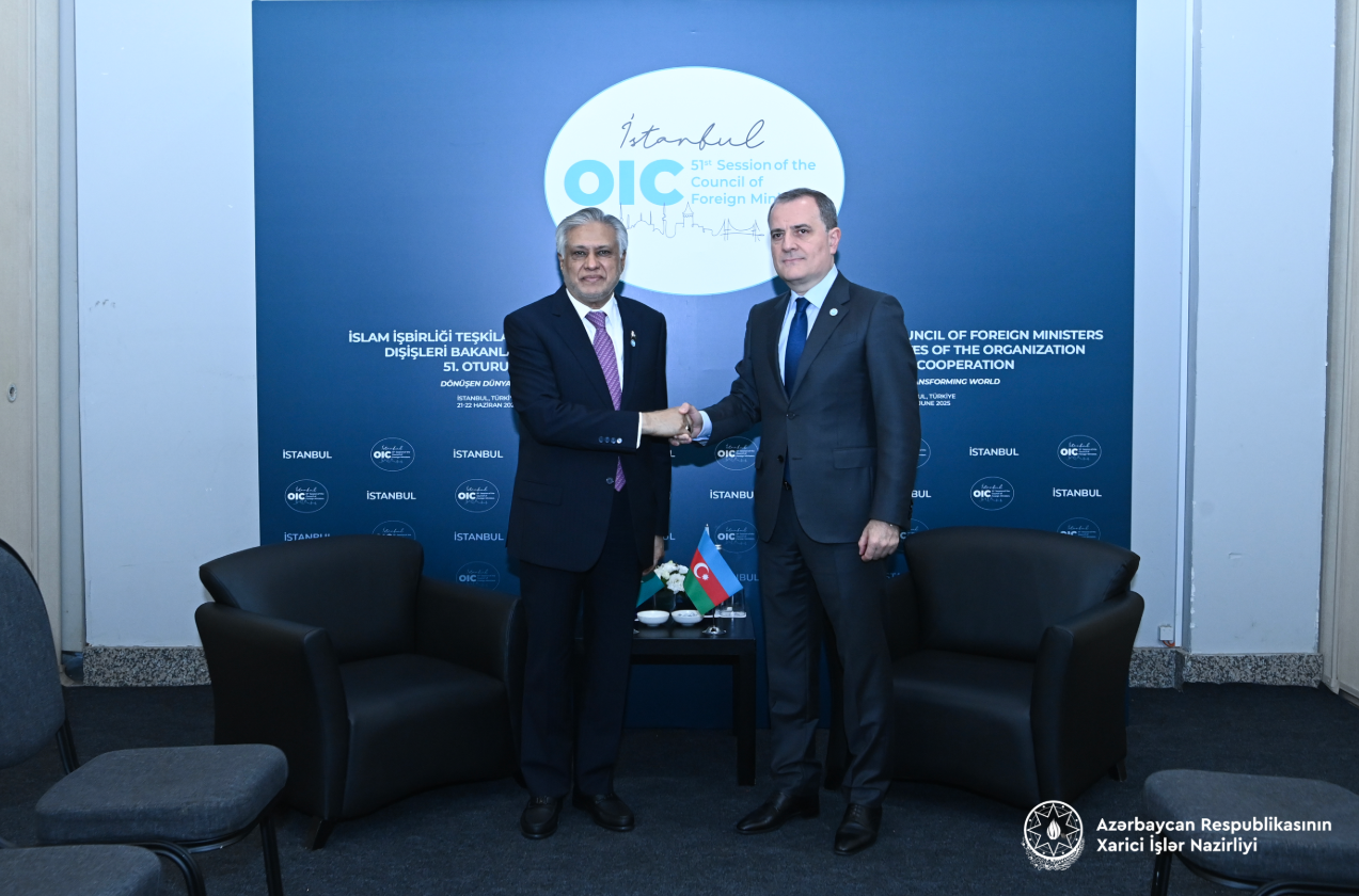 Azərbaycan xarici işlər naziri Ceyhun Bayramov İslam Əməkdaşlıq Təşkilatının Xarici İşlər Nazirləri Şurasının 51-ci sessiyasında iştirakı çərçivəsində Pakistan İslam Respublikasının Baş nazirinin müavini, xarici işlər naziri Məhəmməd İshaq Dar ilə görüşüb.