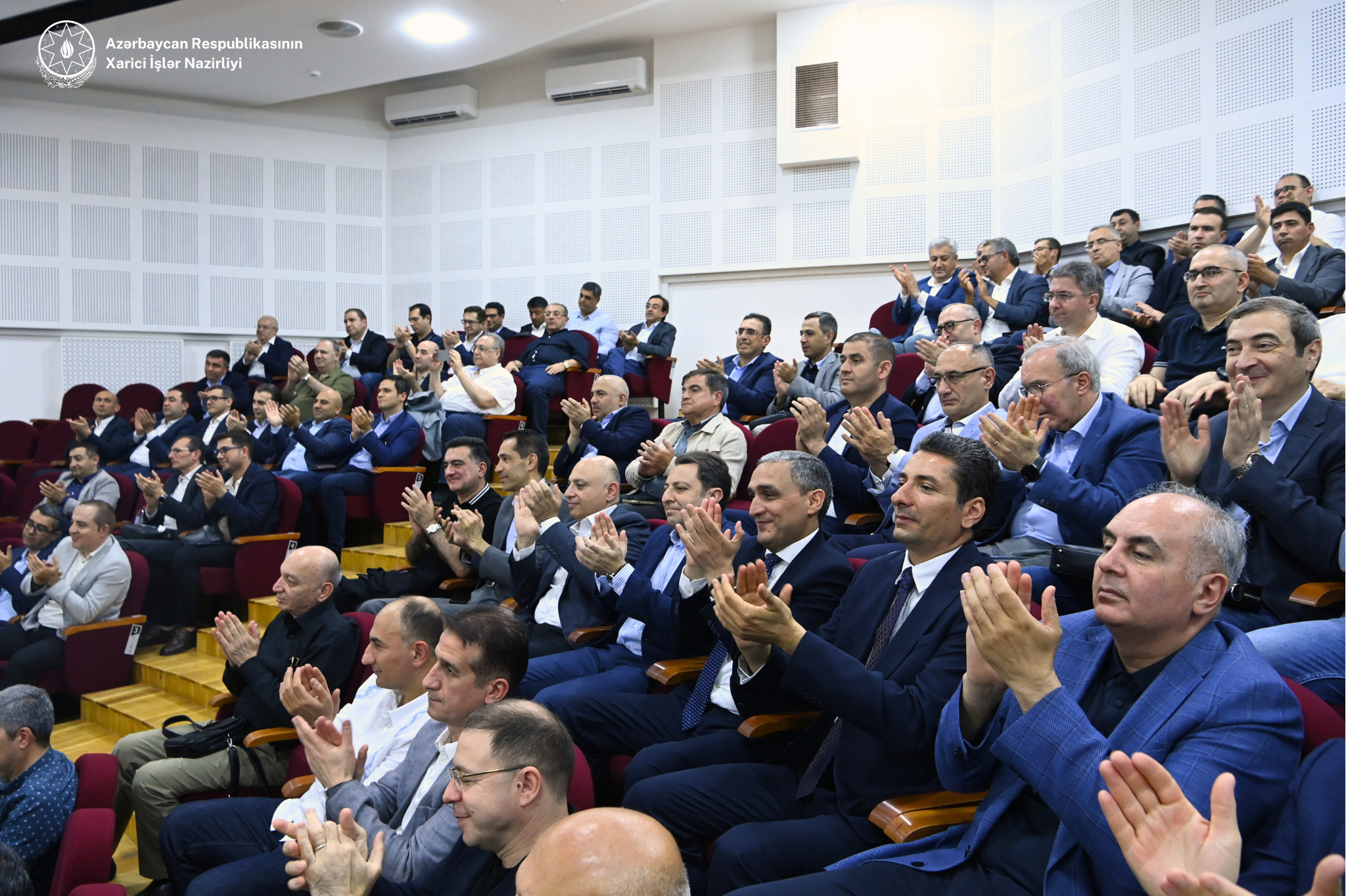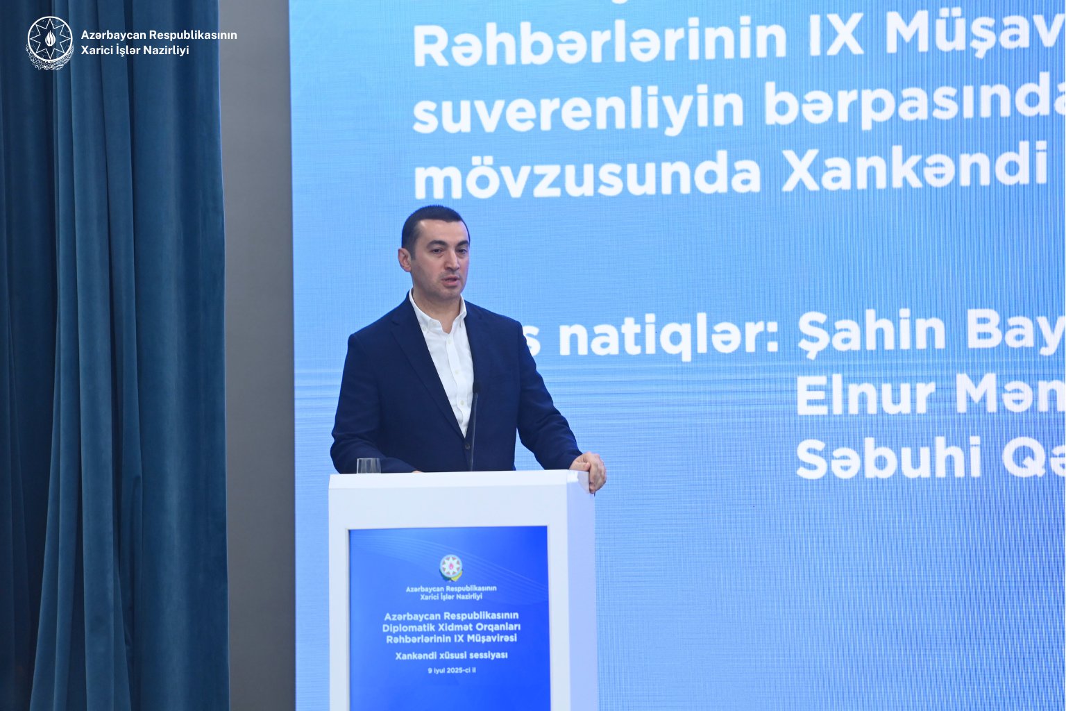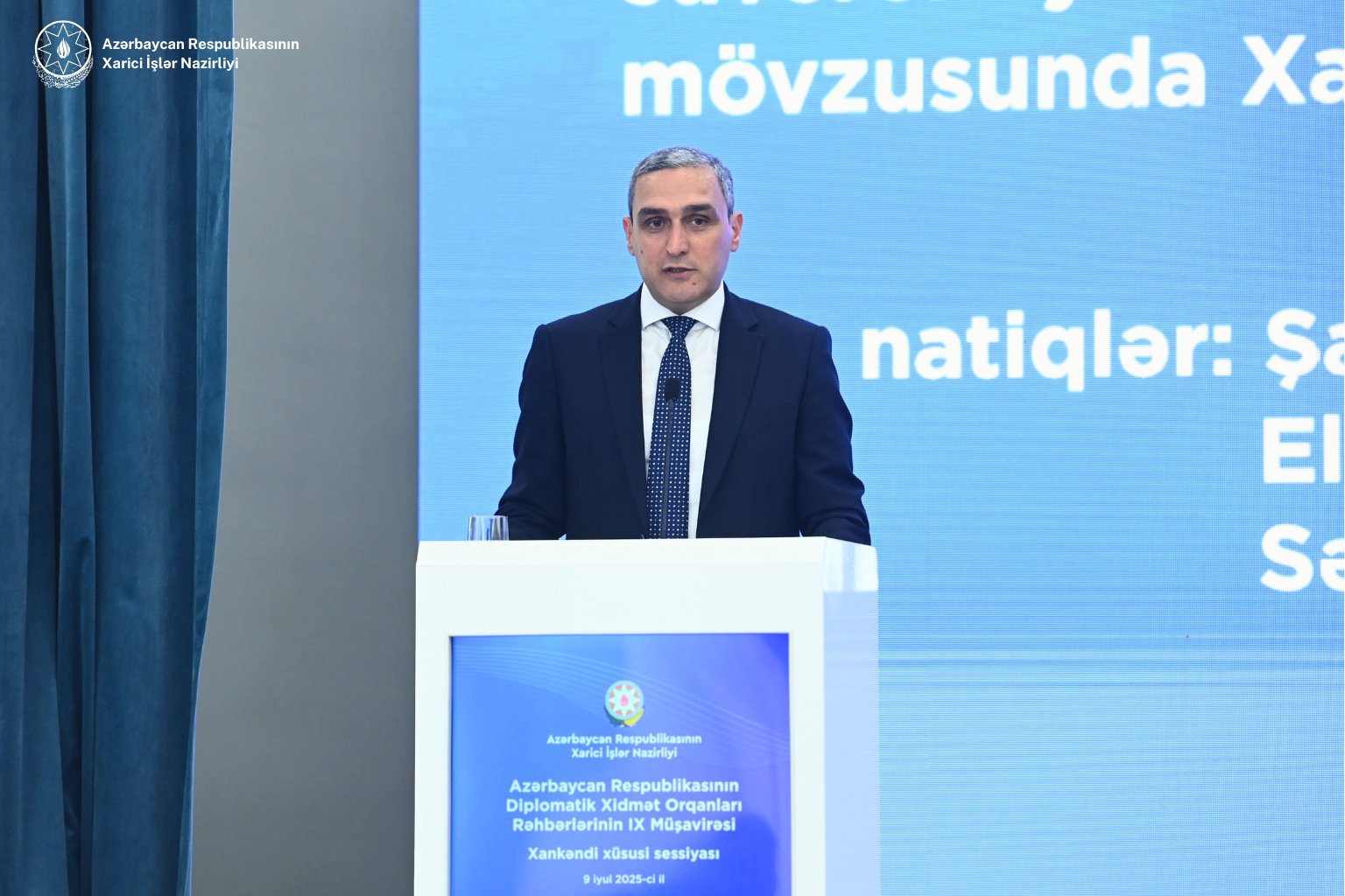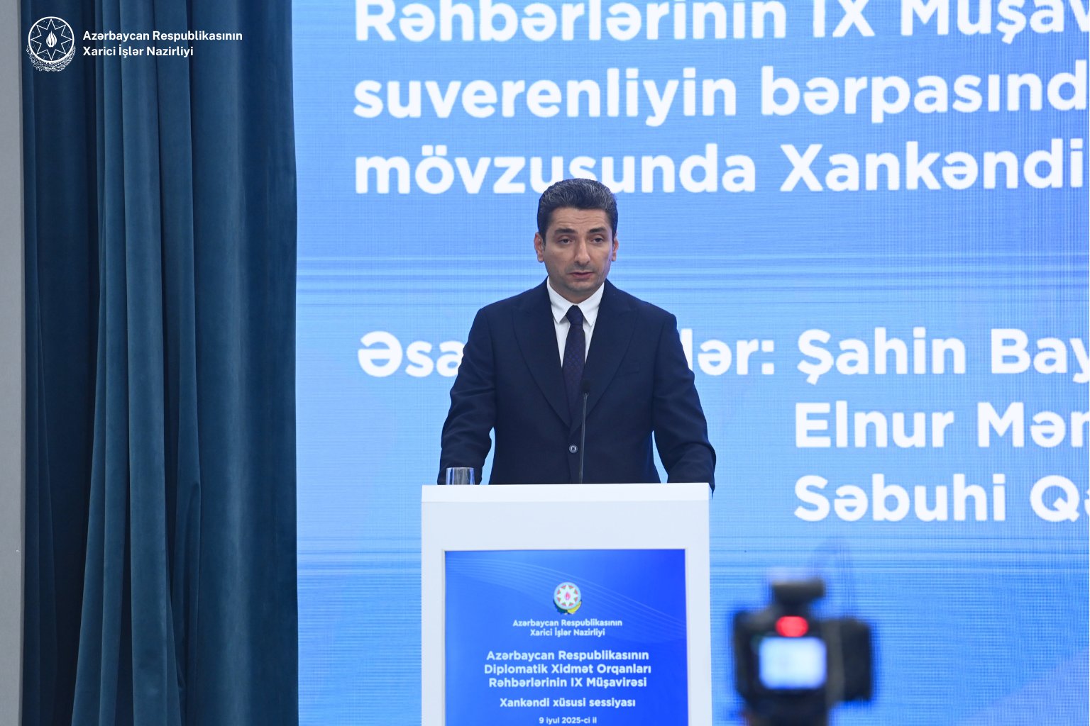 Diplomatik xidmət orqanları rəhbərlərinin IX Müşavirəsinin, eləcə də 9 iyul - diplomatik xidmət orqanları əməkdaşlarının peşə bayramı gününün məhz Xankəndi şəhərində, Qarabağ Universitetində keçirilməsinin simvolik əhəmiyyəti olduğu, bunun həm zəfər tariximizə diplomatlarımız tərəfindən verilən dəyər və Qarabağ Universitetinə dəstəyin göstəricisi olduğu vurğulanıb.
