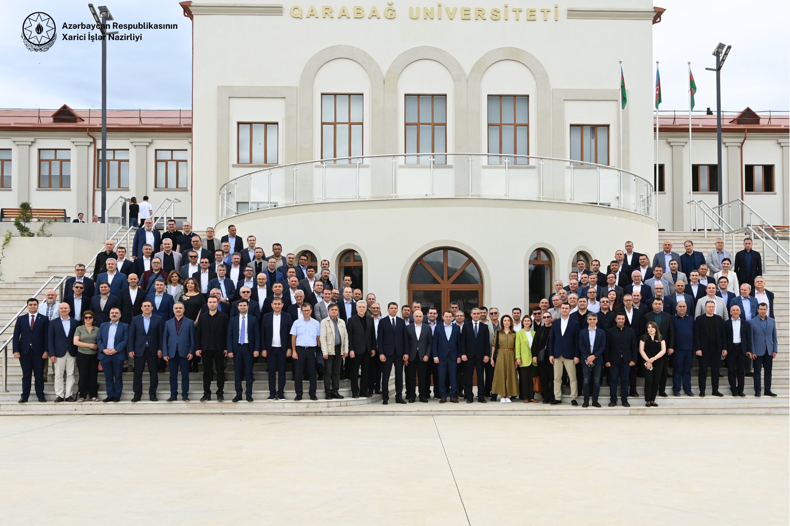 Diplomatik xidmət orqanları rəhbərlərinin IX Müşavirəsi çərçivəsində Xankəndi şəhəri, Qarabağ Universitetində “Azərbaycanın xarici siyasəti suverenliyin bərpasından sonra: prioritetlər, imkanlar və çağırışlar” mövzusunda Xankəndi xüsusi sessiyası keçirilib.