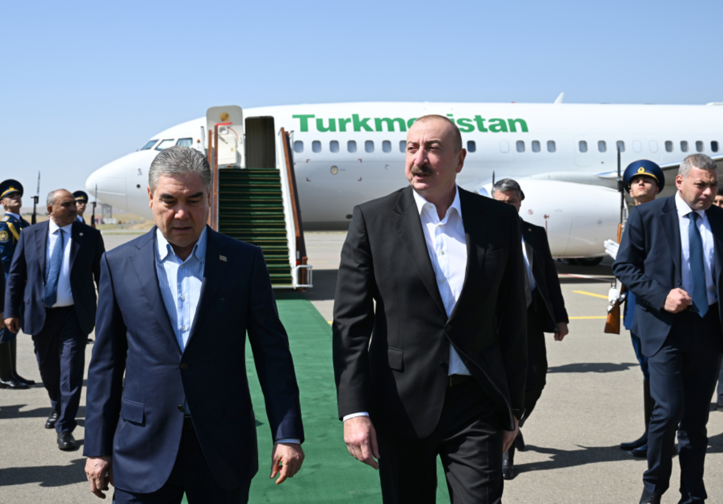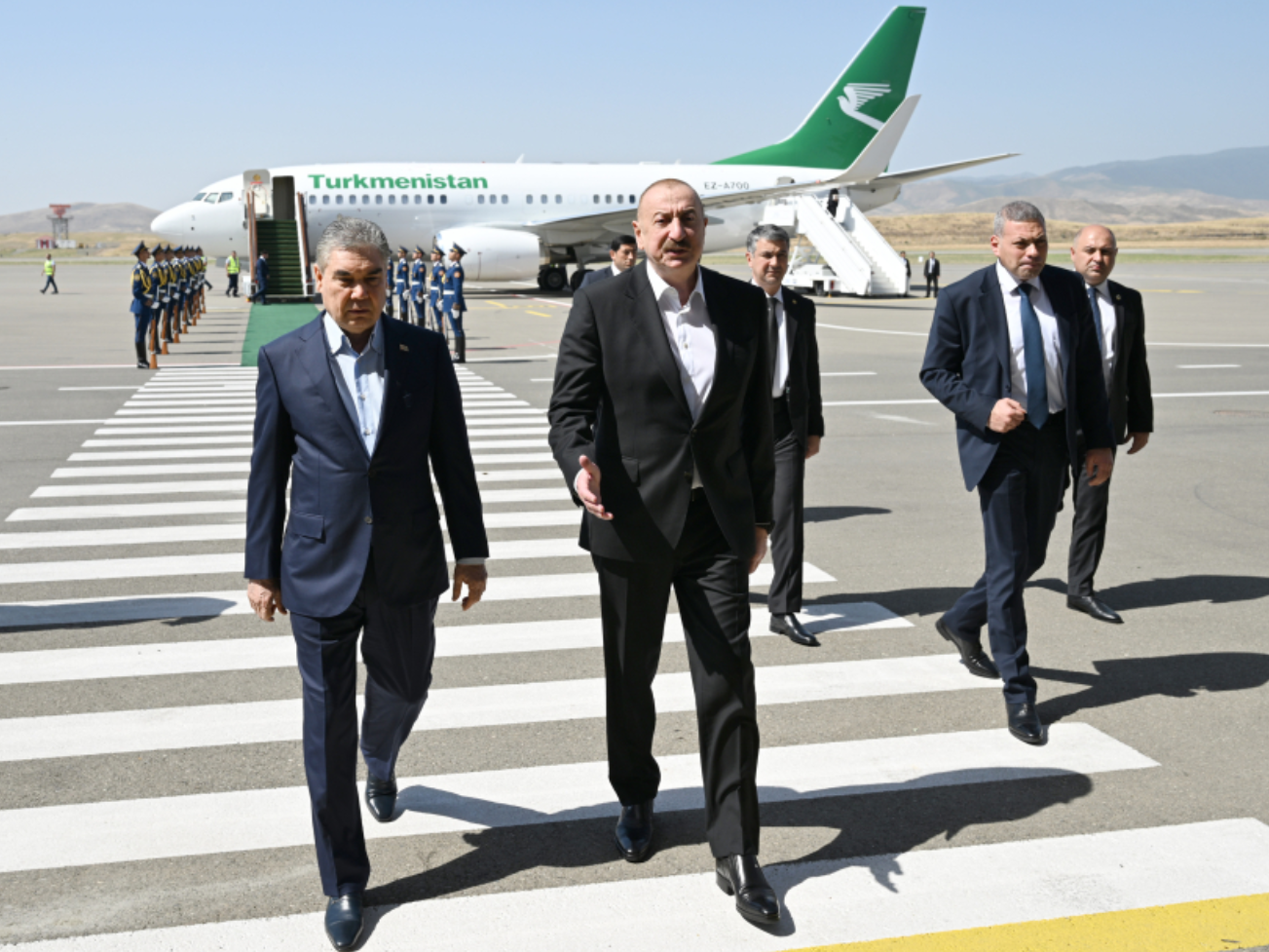 Qurbanqulu Berdiməhəmmədovu Azərbaycan Prezidenti İlham Əliyev qarşılayıb.