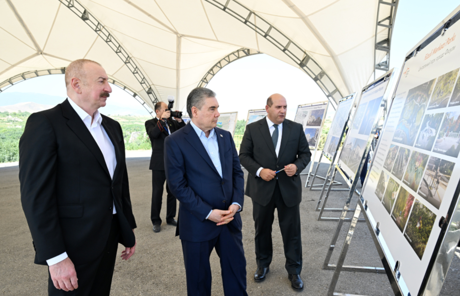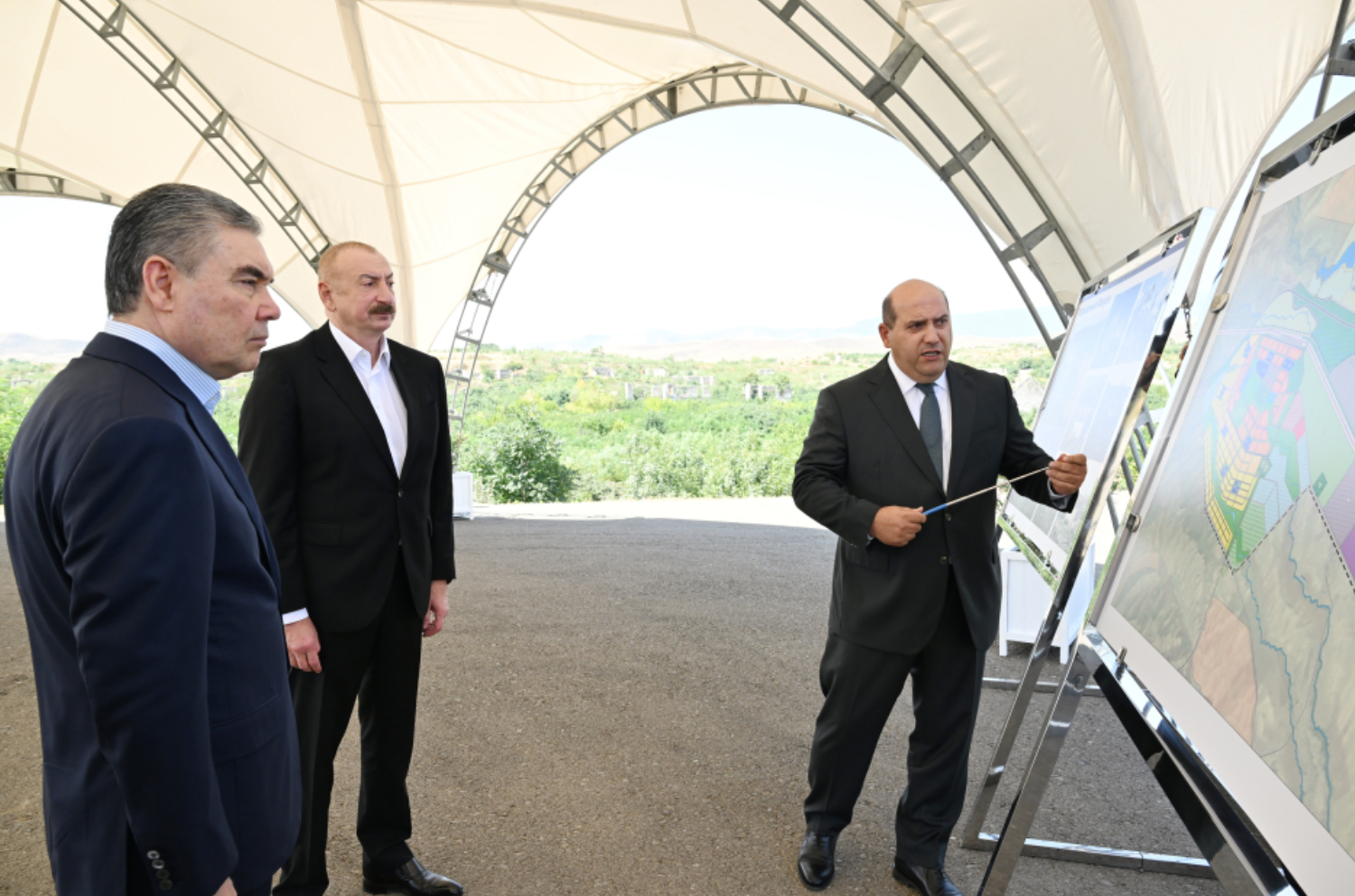 Azərbaycan Prezidenti İlham Əliyev və Türkmənistan Xalq Məsləhətinin sədri Qurbanqulu Berdiməhəmmədov Füzuli şəhərinin dağıdılmış yerlərinə baxıblar.