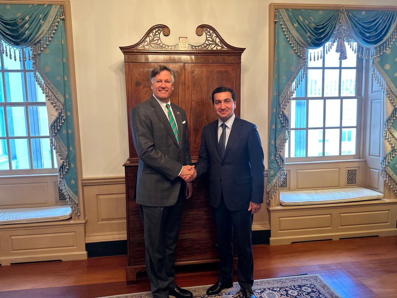 Vaşinqtonda Azərbaycan Prezidentinin köməkçisi - Prezident Administrasiyasının xarici siyasət məsələləri şöbəsinin müdiri Hikmət Hacıyev ABŞ Dövlət katibinin müavini Kristofer Landau ilə görüşüb.