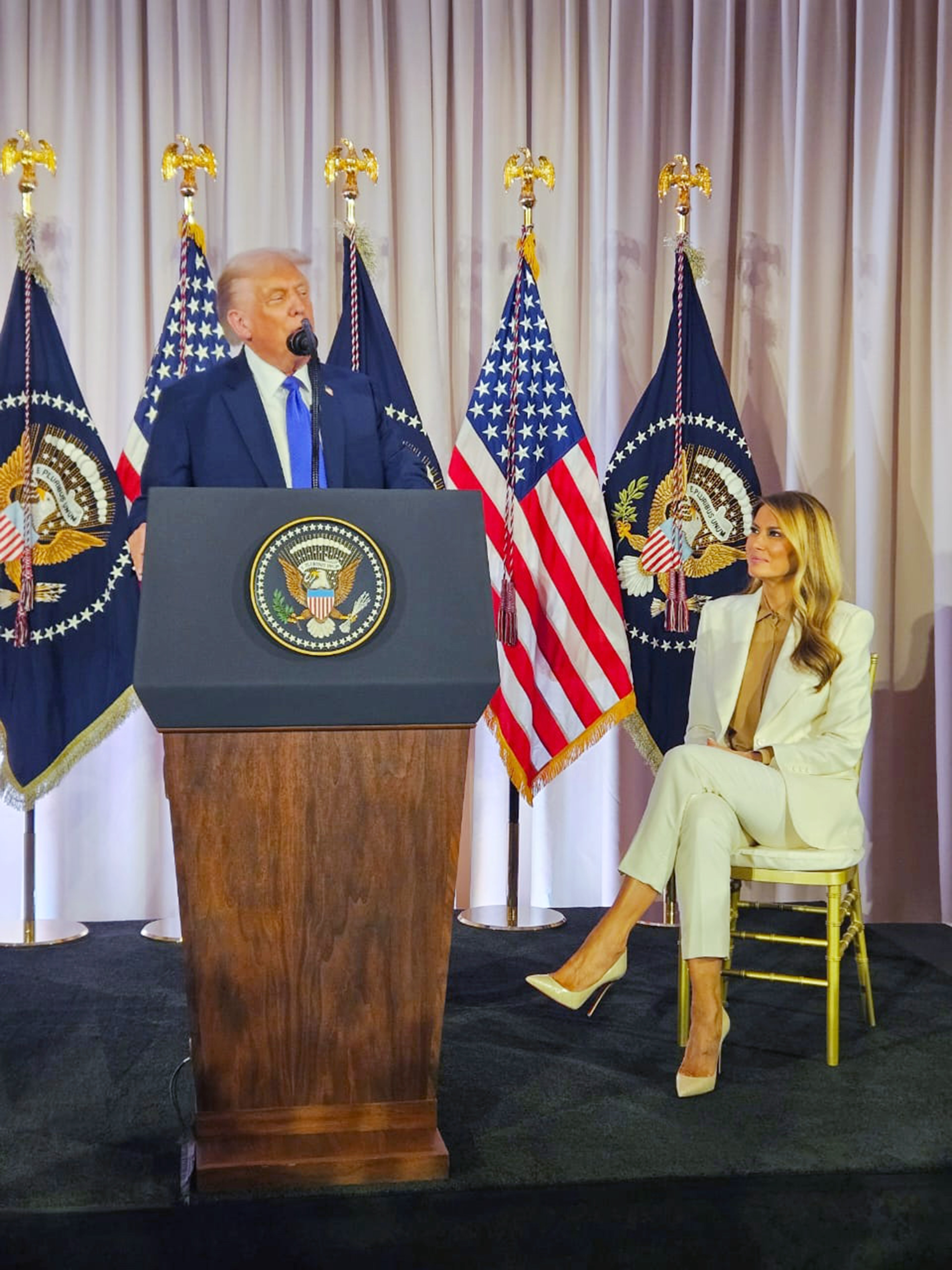Birinci xanım Melaniya Tramp: Mən bu gün günorta “Gələcəyi birlikdə qurmaq” adlı möhtəşəm təşəbbüsə ev sahibliyi etdim. Ümid edirəm ki, bütün birinci xanımlar və həyat yoldaşları gələn il birinci rübdə Ağ Evdə mənə qoşulacaqlar və dünyadakı uşaqlar üçün uğur qazanacağıq. Təşəkkür edirəm.