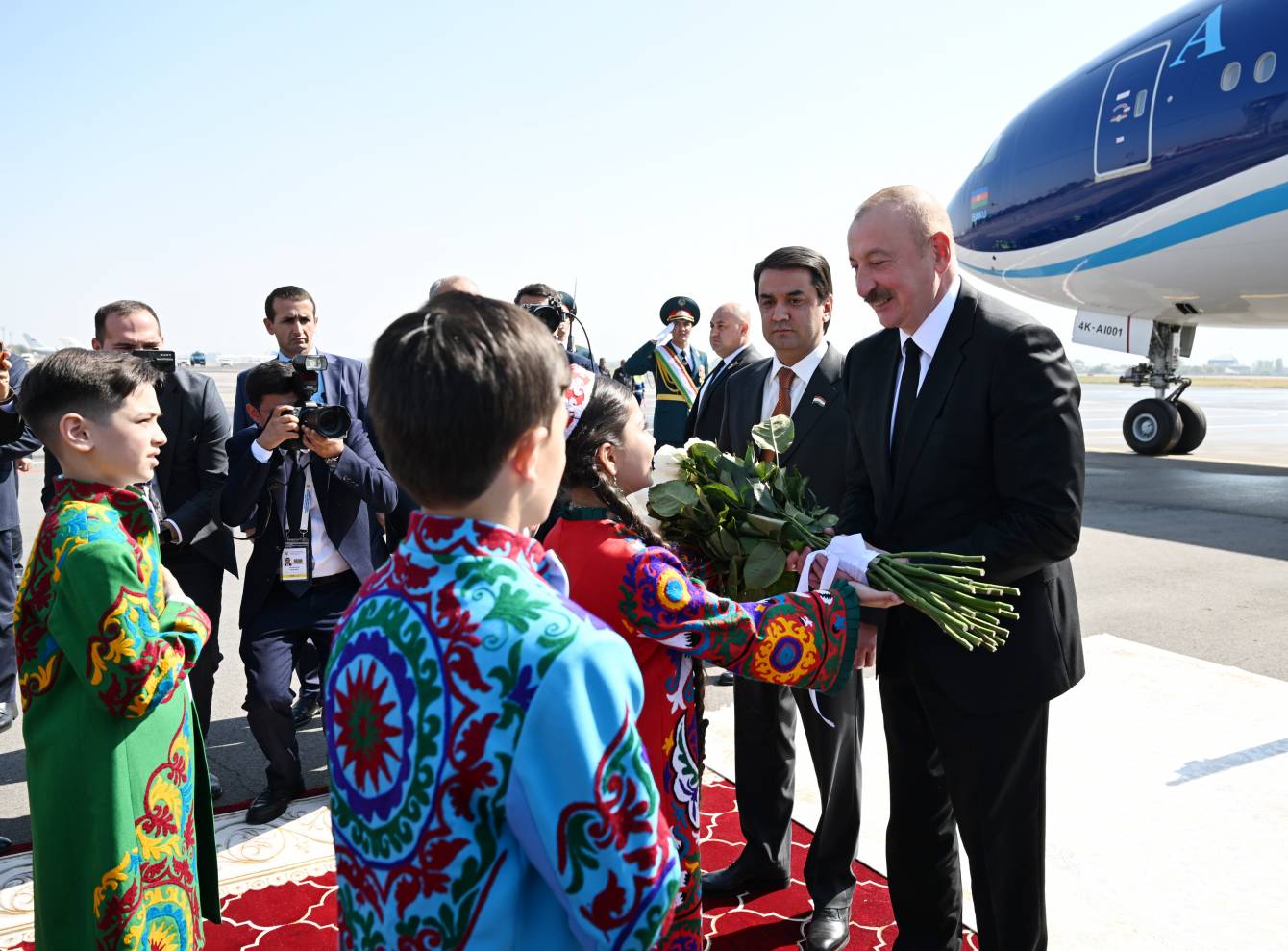 Azərbaycan Prezidentini Tacikistan Respublikası Ali Məclisi Milli Məclisinin sədri Rüstəm Emoməli və digər rəsmi şəxslər qarşılayıblar.