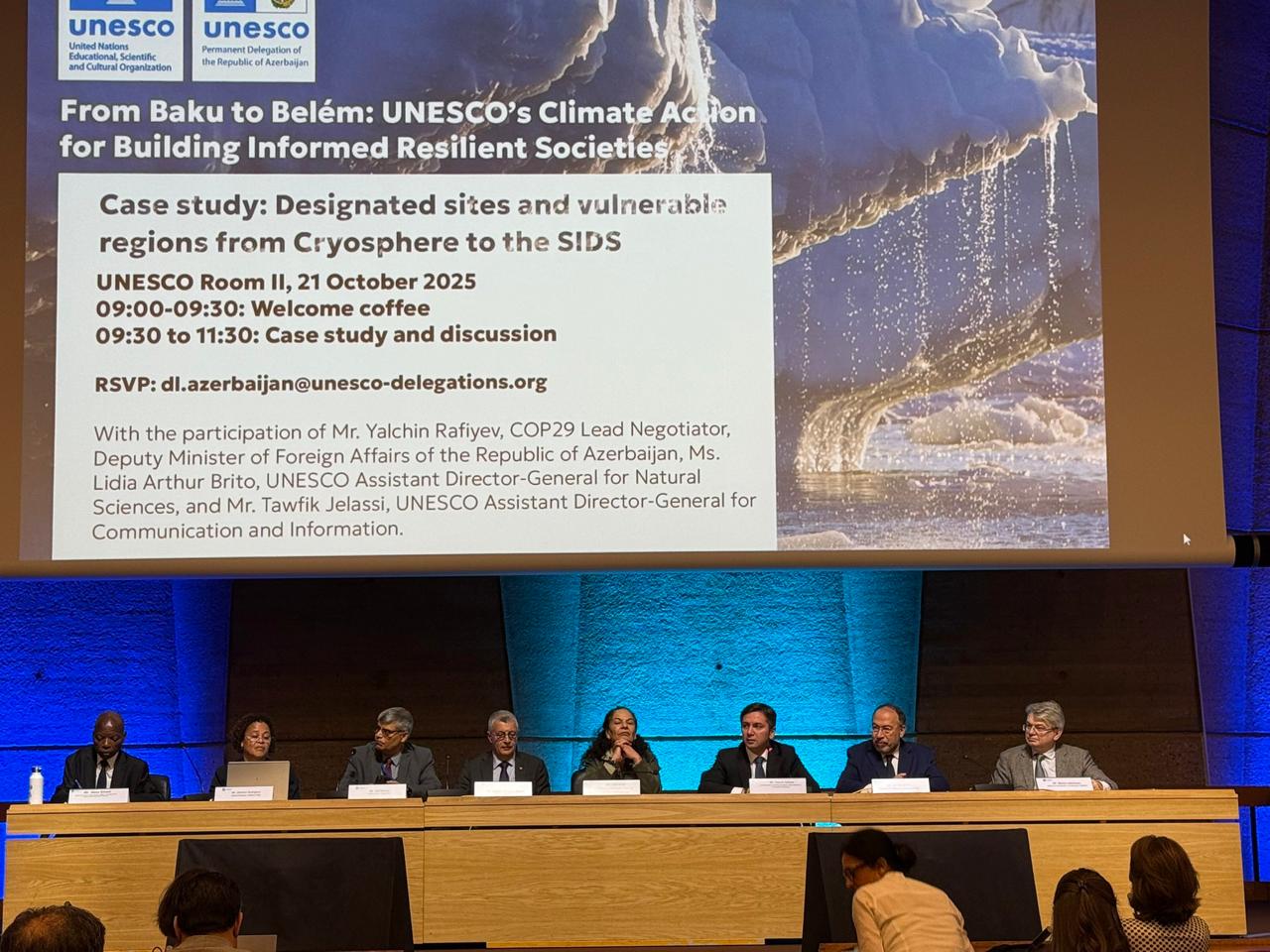 Oktyabrın 21-də UNESCO-nun Parisdə yerləşən mənzil-qərargahında "Bakıdan Belemə: Dayanıqlı və Maariflənmiş Cəmiyyətlərə Doğru İqlim Fəaliyyəti" adlı yüksək səviyyəli tədbir keçirilib.