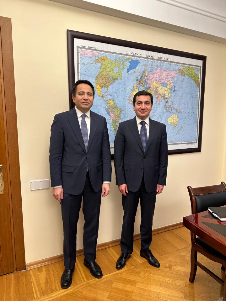 Qazaxıstanın Azərbaycandakı səfiri Alim Bayel Prezidentin Xarici Siyasət üzrə köməkçisi Hikmət Hacıyevlə görüşüb.