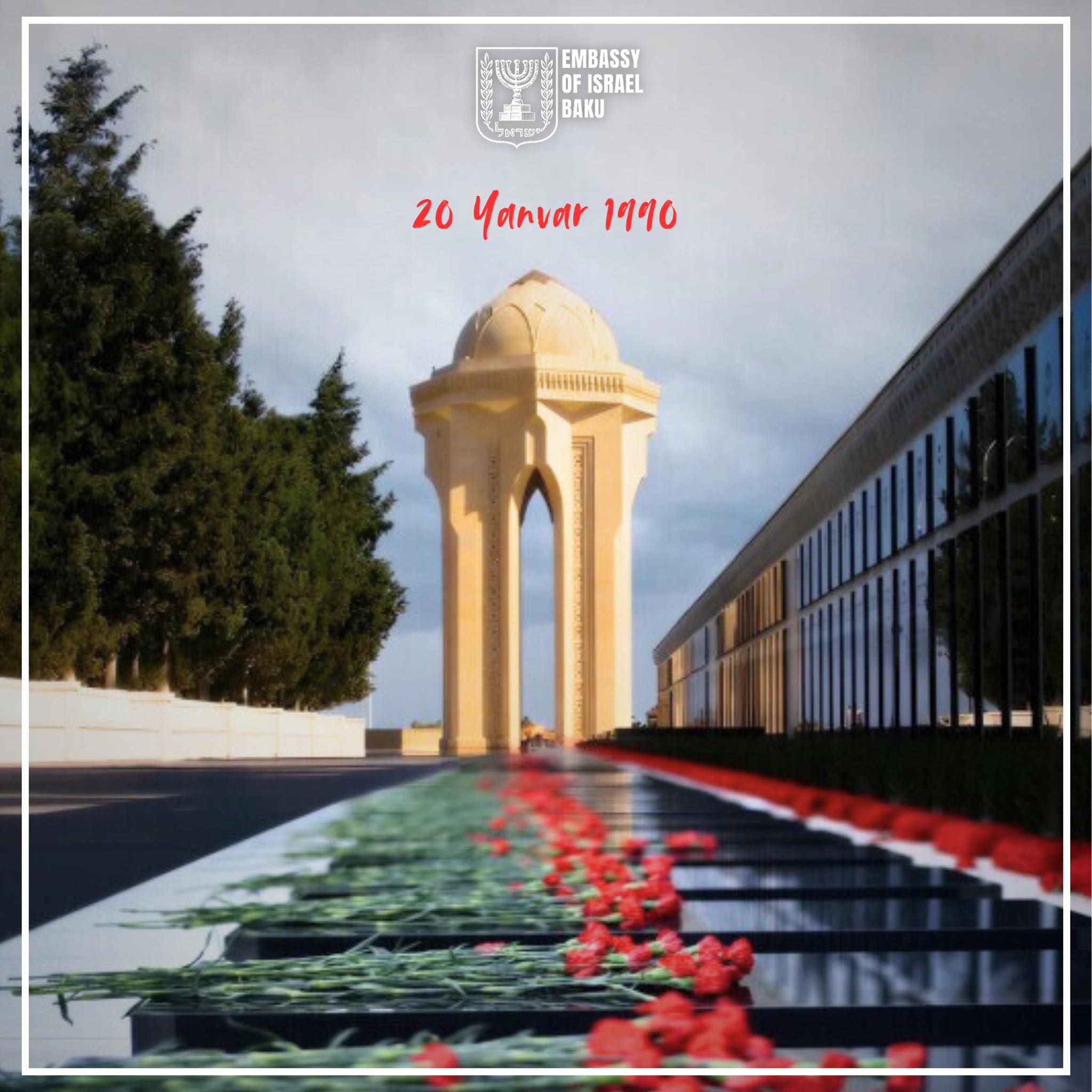 İsrailin Azərbaycandakı səfirliyi sosial mediada 20 Yanvar faciəsi ilə əlaqədar paylaşım edib.