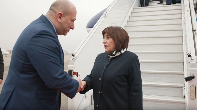 Tbilisi Beynəlxalq Hava Limanında Milli Məclisin sədrini Gürcüstanın xarici işlər nazirinin müavini Aleksandr Xvtisiaşvili və digər rəsmi şəxslər qarşılayıblar.