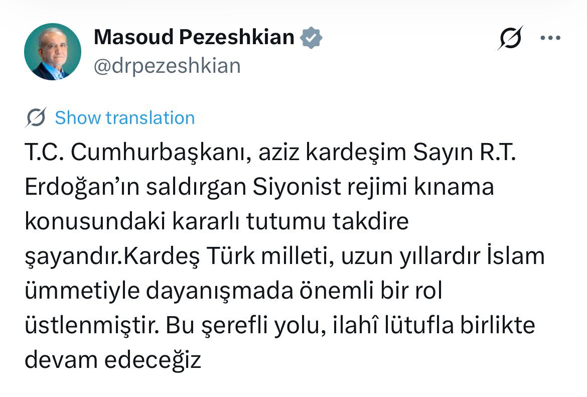 Teleqraf xəbər verir ki, Məsud Pezeşkian bu barədə "X" platformasında türk dilində paylaşım edib.