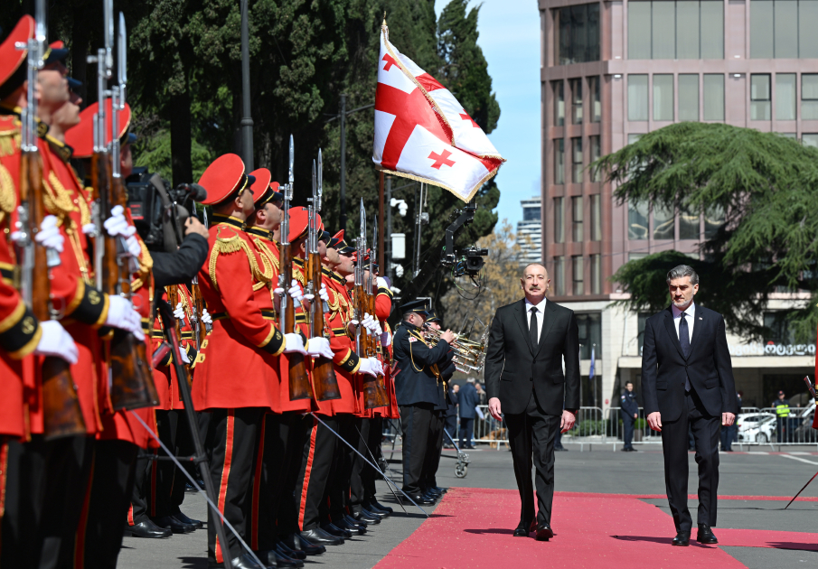 "Azərbaycan Prezidentinin rəsmi qarşılanma mərasimi baş tutdu. Həmkarımı Gürcüstanın Prezident Sarayında qarşıladım. Mərasim çərçivəsində hər iki ölkənin dövlət himnləri səsləndirildi. Səfər zamanı həmkarımla təkbətək görüş keçirdim. Azərbaycan dövlət başçısını səfər zamanı birinci xanım və rəsmi nümayəndə heyəti müşayiət edir".