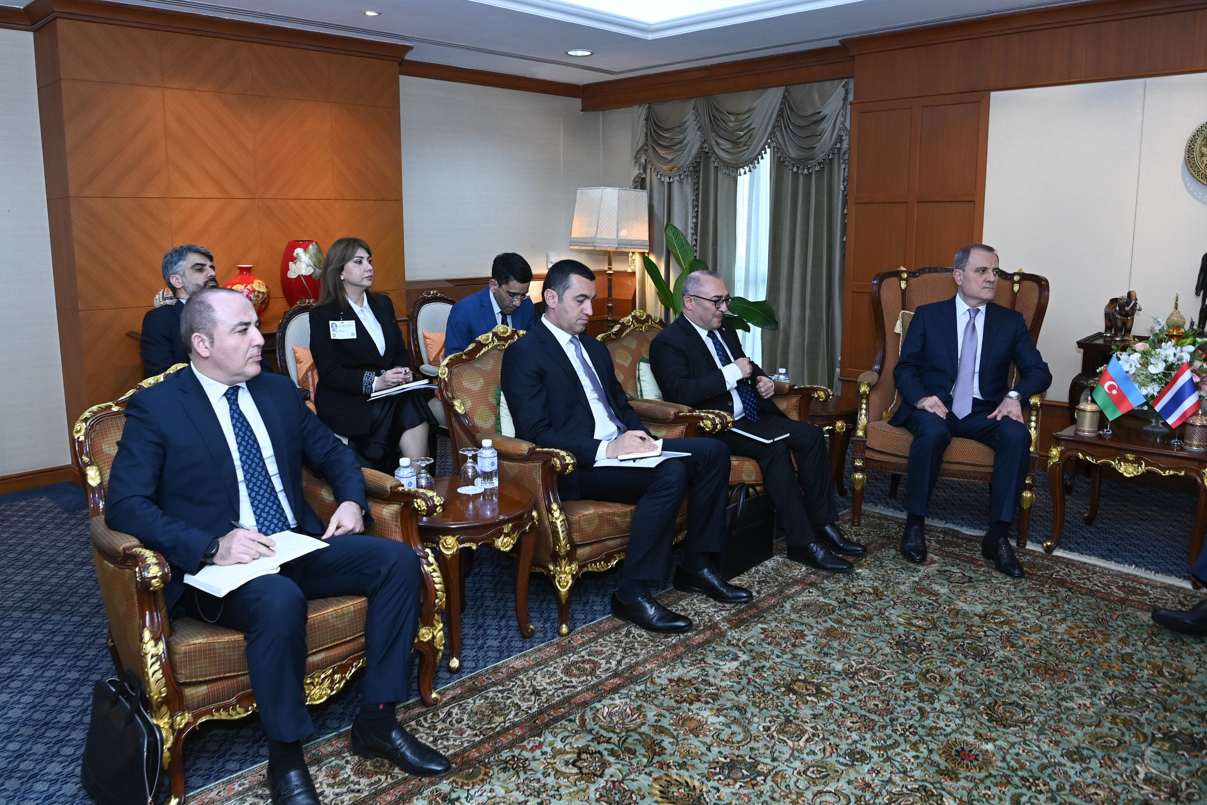 Azərbaycan xarici işlər naziri Ceyhun Bayramov Banqkoka işgüzar səfəri çərçivəsində Tailand Krallığının Baş nazirinin müavini və xarici işlər naziri Sihasak Phuanqketkeovla görüşüb.