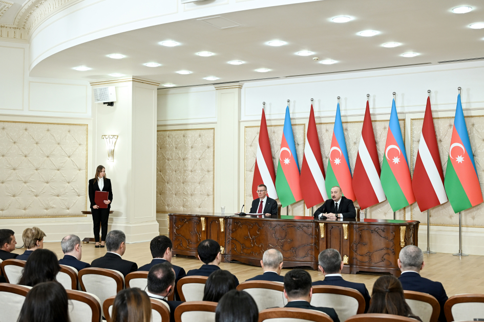 Aprelin 22-də Azərbaycan Prezidenti İlham Əliyev və Latviya Prezidenti Edqars Rinkeviçs mətbuata bəyanatlarla çıxış ediblər.