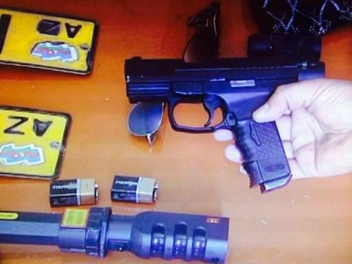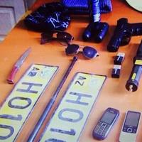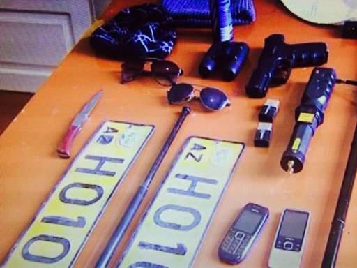 Əməliyyatçılar avtomobilə baxış zamanı 1 ədəd pnevmatik tapança, 1 ədəd elektroşok aparatı, 1 ədəd durbin, 1 ədəd dəmir dəyənək, 1 ədəd bıçaq, gözyaşardıcı qaz, idman papaqları və digər əşyalar aşkarlayaraq maddi sübut kimi götürüblər. Həmçinin saxlanılan şəxslərin üstündən müxtəlif çəkilərdə narkotik maddə olan heroin də tapılıb.