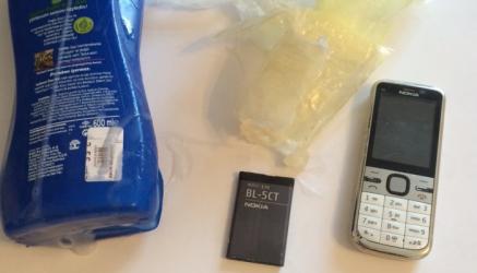 Keçirilən baxış zamanı Rövşən Ələkbərovun gətirdiyi “HOBBY” markalı şampun qabının içərisindən 1ədəd “Nokia-C5” markalı mobil telefon aparatı aşkar edilərək götürülüb.
