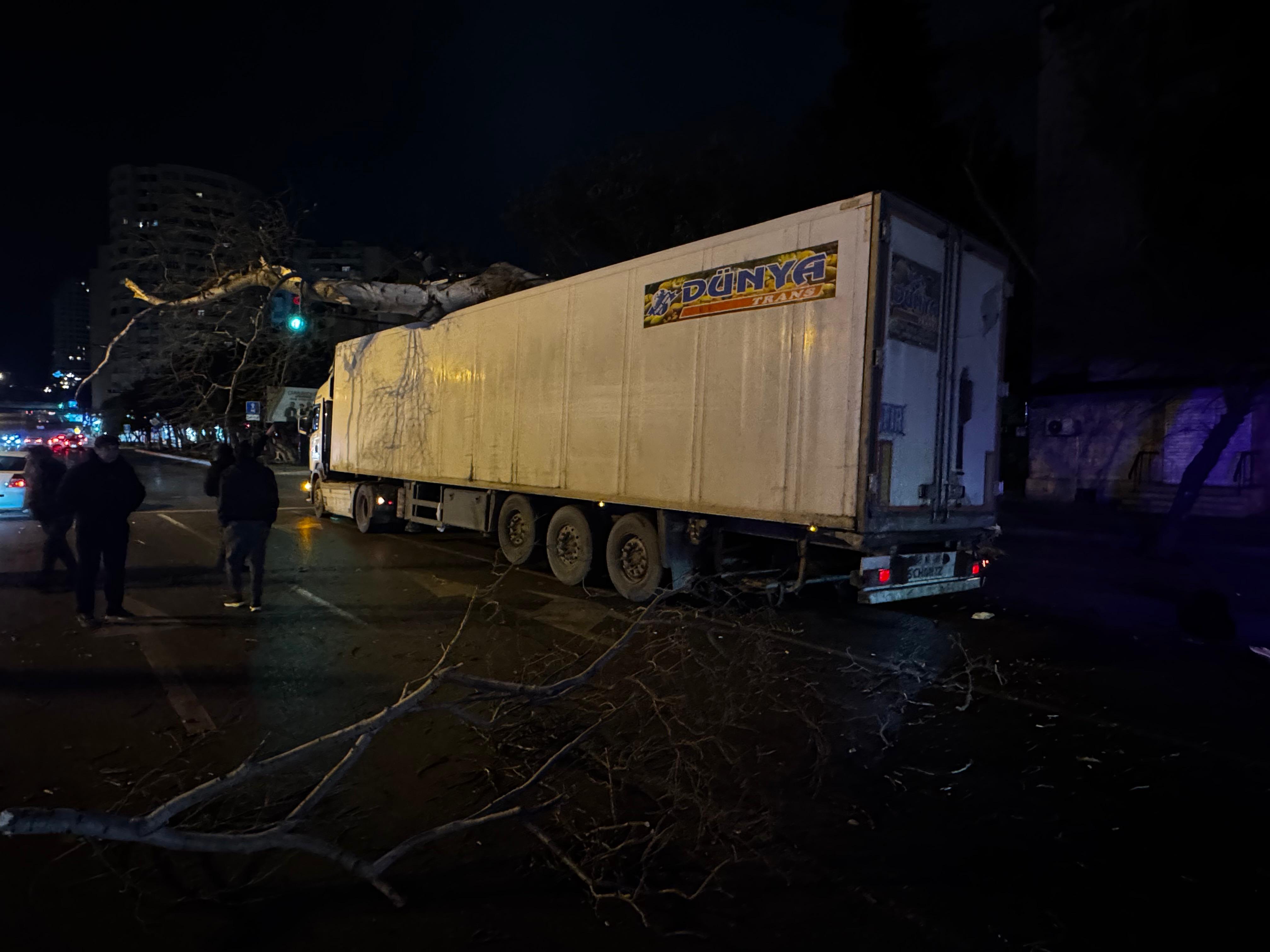 Paytaxtın Yasamal rayonu, Ə.Haqverdiyev küçəsi ilə Ə.Cəmil küçəsinin kəsişməsində yük avtomobili ağaca dəyib.