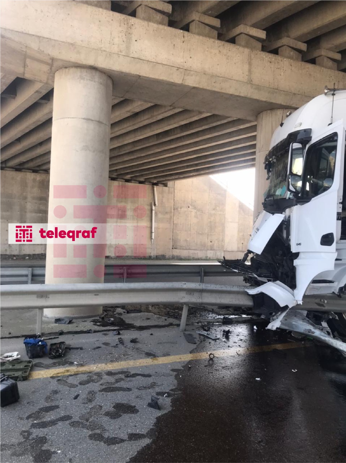 Yük maşınının sürücüsü idarəetməni itirib və maşın ərazidəki körpüyə çırpılıb.