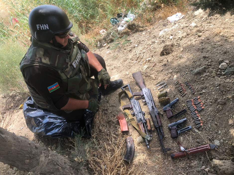 Hüquq-mühafizə orqanı əməkdaşları ilə birgə müvafiq təhlükəsizlik tədbirləri görüldükdən sonra hadisə yerlərinə baxış zamanı aşkar edilmiş sursatların döyüş tətbiqinə yararlı 17 ədəd F-1 əl qumbarası, 16 ədəd UZRQM partladıcısı, 1 ədəd UBR-M75P1 partladıcısı, 85 ədəd 7,62 mm-lik, 44 ədəd 5,45 mm-lik və 13 ədəd 9,18 mm-lik mərmi, 1 ədəd AK-74 avtomatı və 2 ədəd sandıqcası, 1 ədəd AKSU avtomatı, 2 ədəd Makarov tipli tapança və 2 ədəd sandıqcası, 1 ədəd süngü bıçağı olduğu müəyyən edilib.