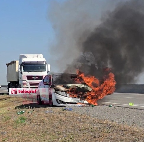 Hərəkətdə olan "KİA" markalı avtomobil anidən yanmağa başlayıb.