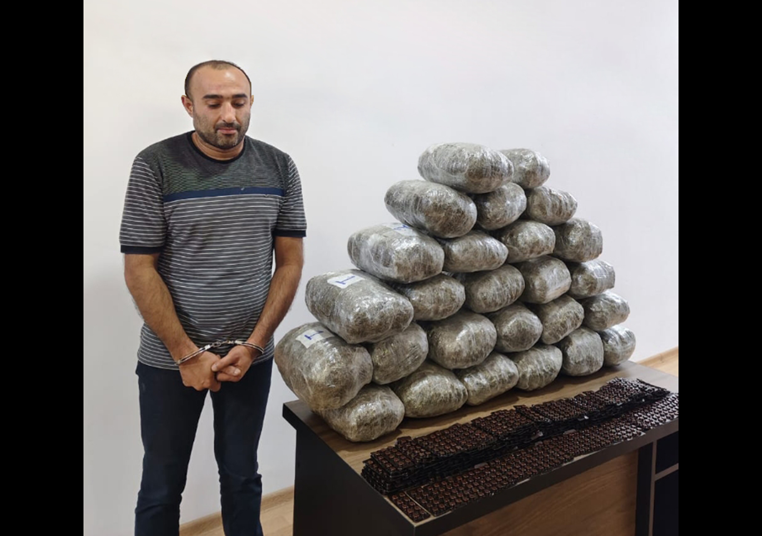 Məlumata görə, A.Hüseynovun əldə etdiyi 3 ədəd bağlamaya keçirilmiş baxış zamanı oradan 26 kiloqrama yaxın qurudulmuş marixuana və 2520 ədəd narkotik tərkibli M40 “Metadon” həbbləri aşkar edilib.