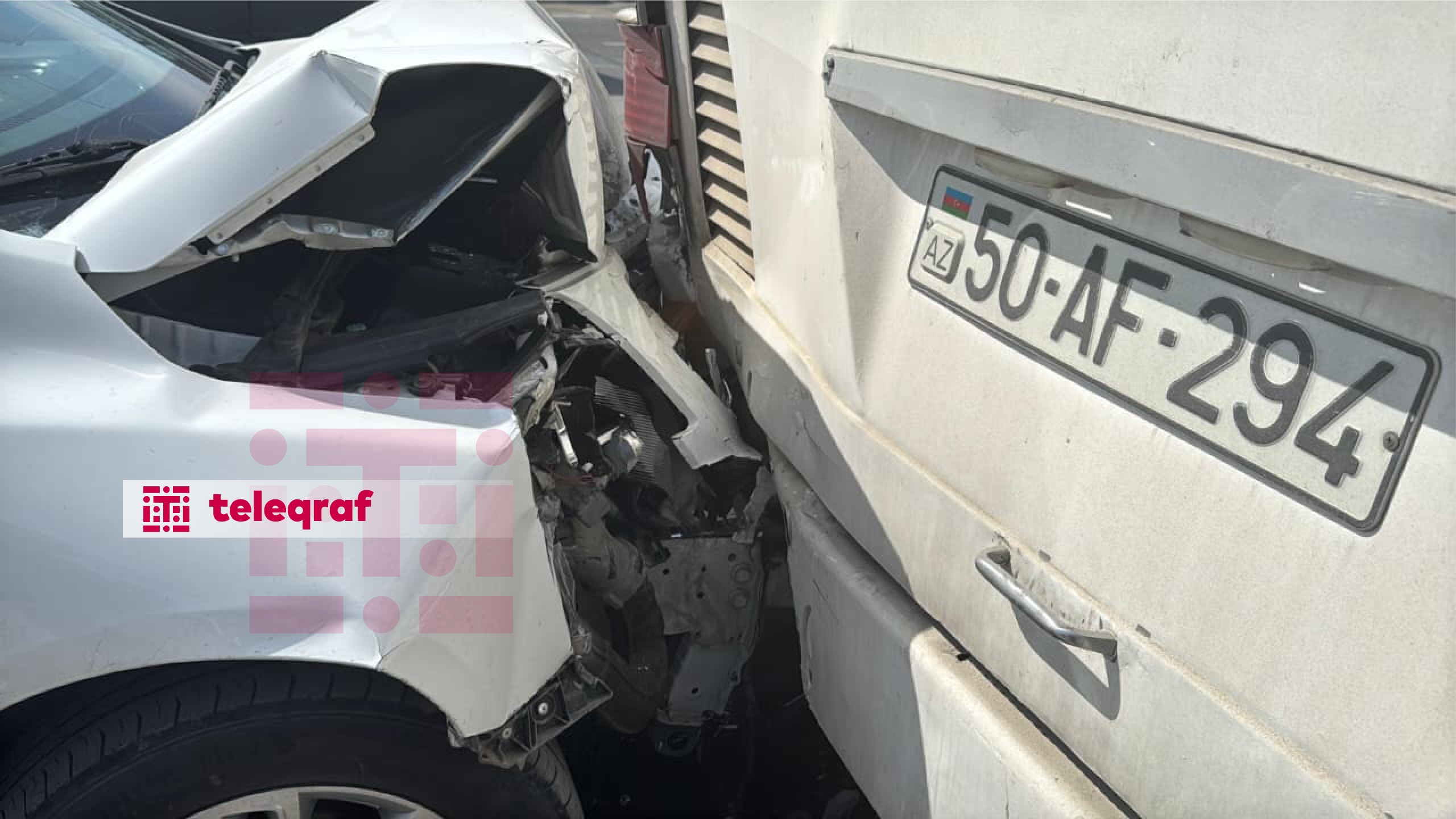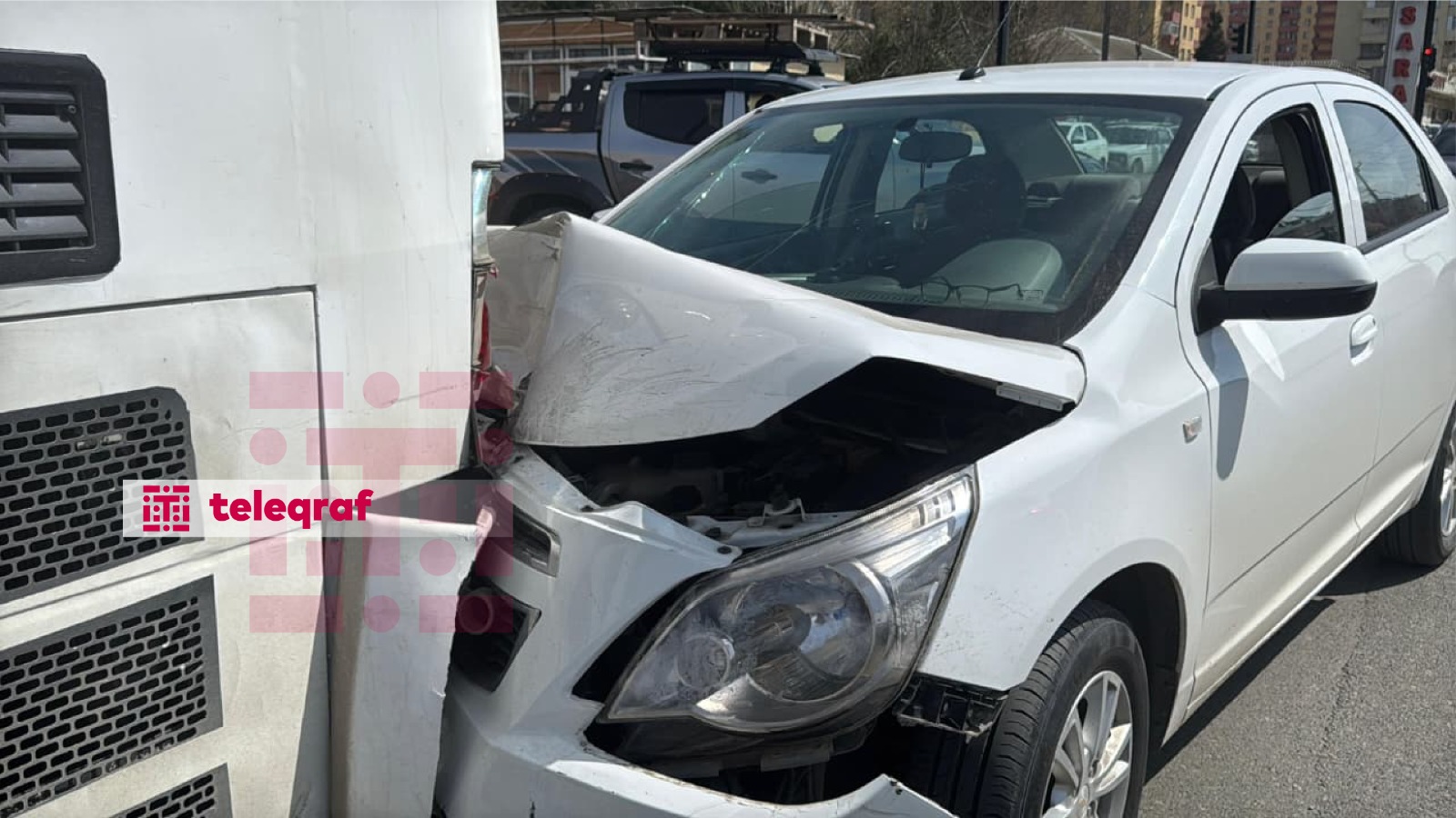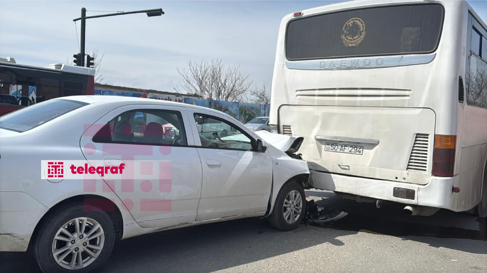 İlkin məlumata görə, “Chevrolet Cobalt” markalı minik avtomobili 522 nömrəli marşrut xətti üzrə hərəkət edən sərnişin avtobusu ilə toqquşub.