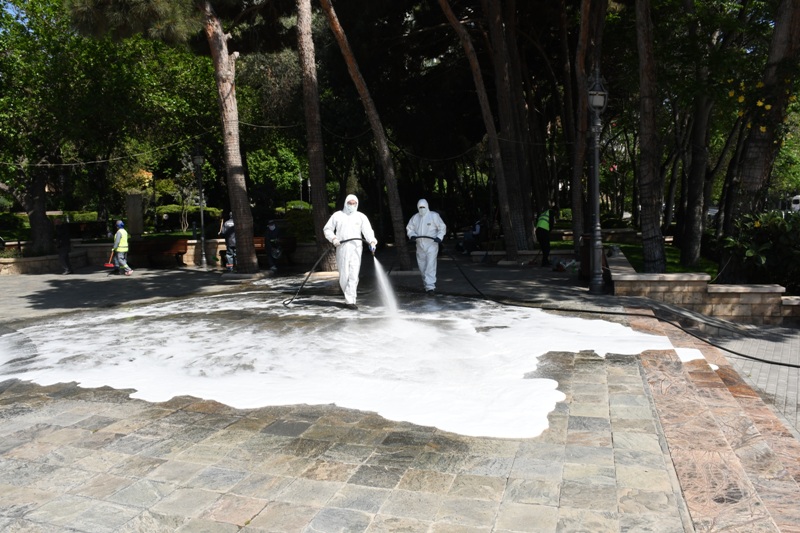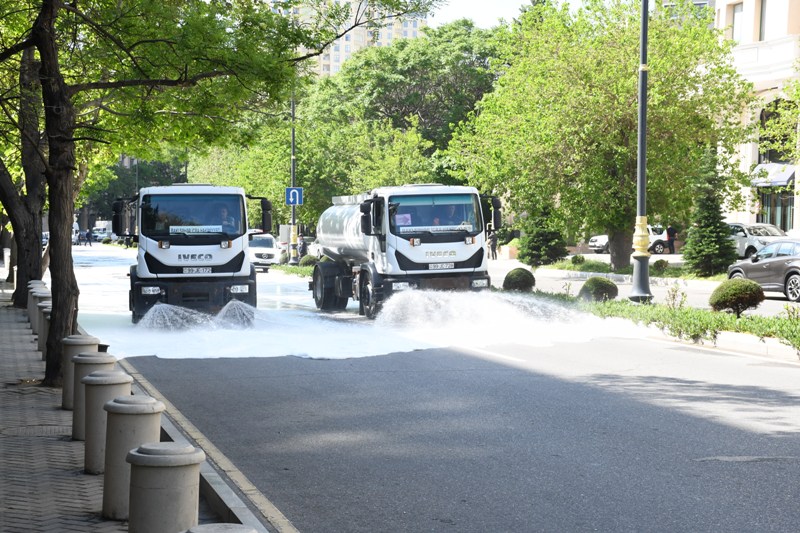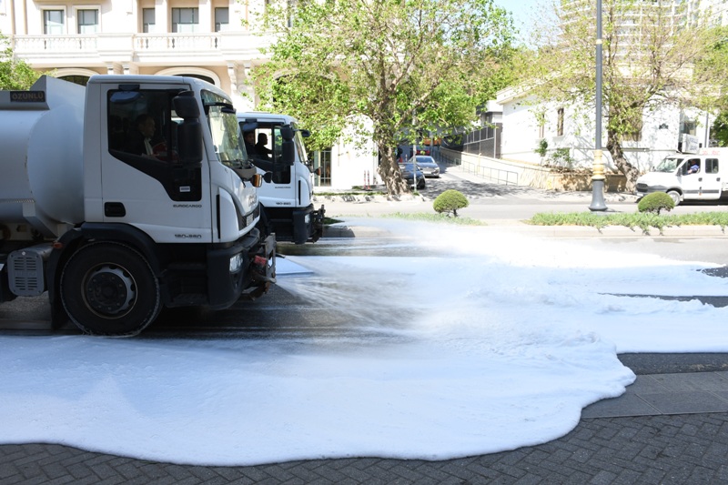 Bakı Şəhər İcra Hakimiyyəti Kommunal təsərrüfat xidmətlərinin texnikası əsas küçə və prospektlərin bitki və canlılara ziyansız yuyucu maddələrlə yuyulmasını aparıb, təmizlik işləri zamanı həm də məhəllədaxili və ara yollar da yuyulub. Xidmətin əməkdaşları tərəfindən prospekt və küçələrin, səki kənarlarının, bordyurların və buradakı işıq dirəklərinin, yol kənarındakı məhəccərlərin, park və istirahət yerlərində oturacaqların yuyulmasını həyata keçirilib, həyət və yaşayış məhəllələrində təmizlik işləri görülüb. İctimai-iaşə, ticarət və digər obyektlərin vitrinləri təmizlənib, ətrafında səliqə-sahman yaradılıb.